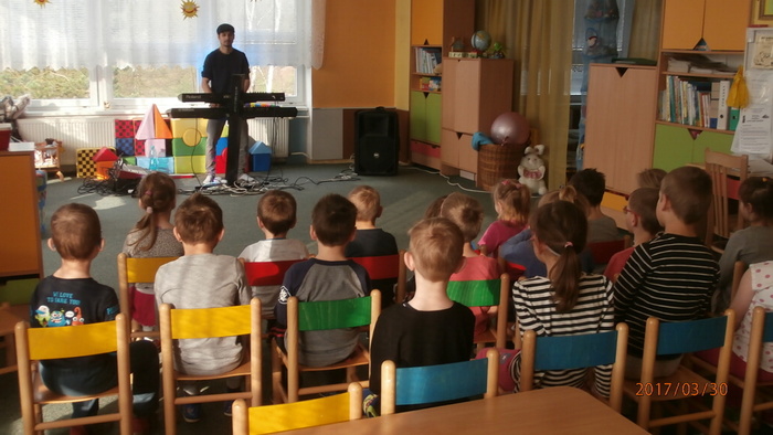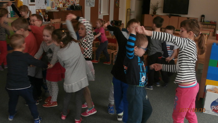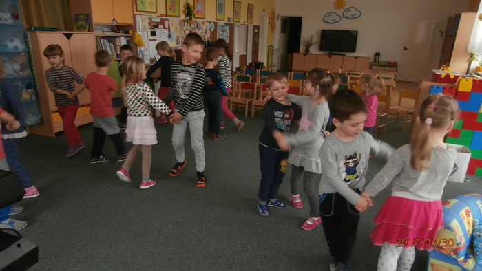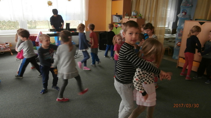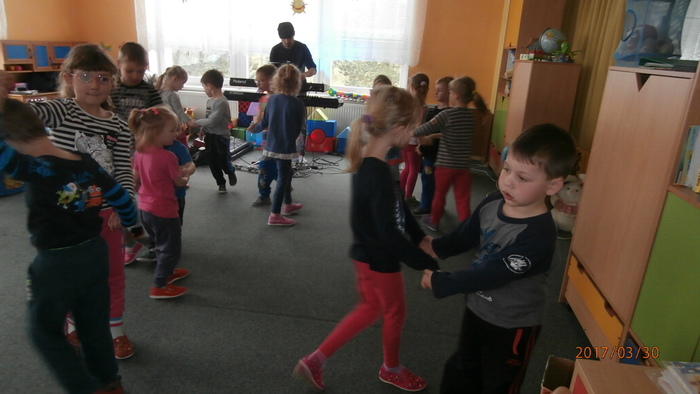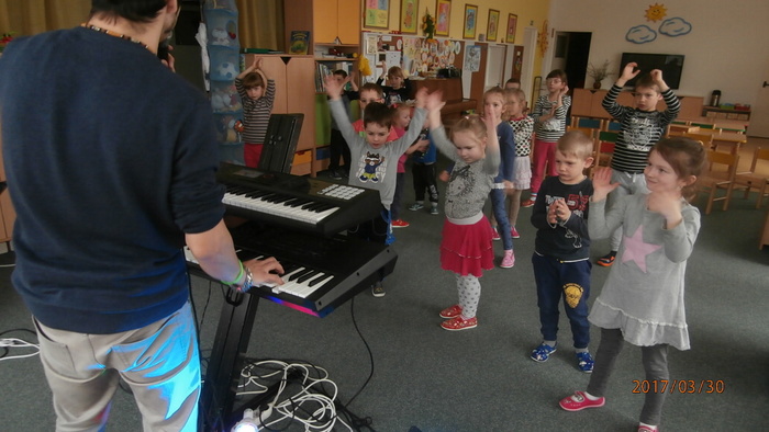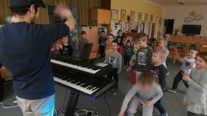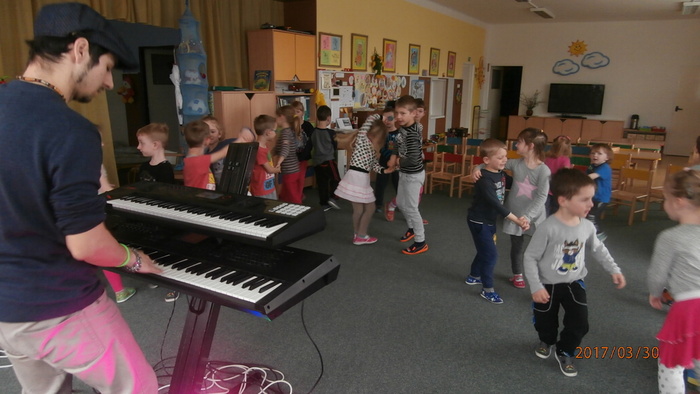 Dnes čekalo děti v mateřské škole velké překvapení - Rytmická show - hudební pořad pro děti. Zazněly krásné písničky z pohádek. Po celou dobu se děti aktivně zapojovaly - zpívaly, doprovázely písničky pohybem, tancovaly řešily hudební hádanky. Bylo to moc prima. A jak je vidět na fotografiích, všechny děti si to náramně užívaly.