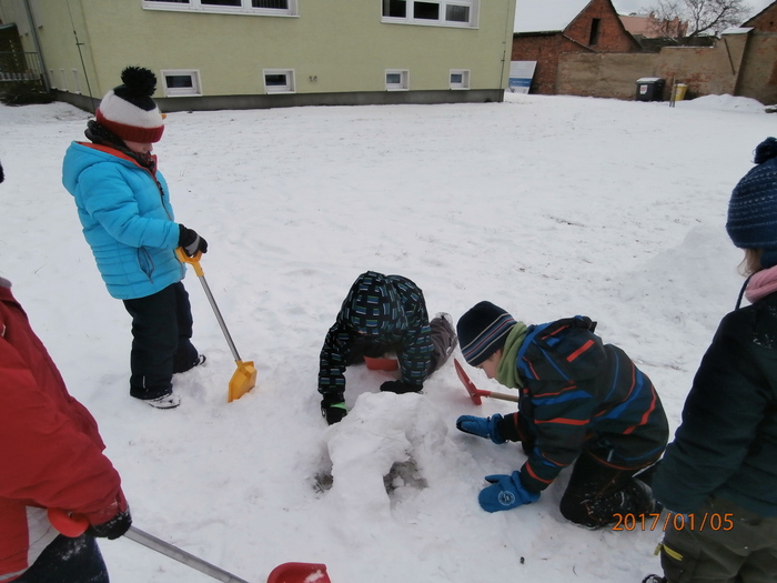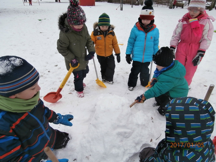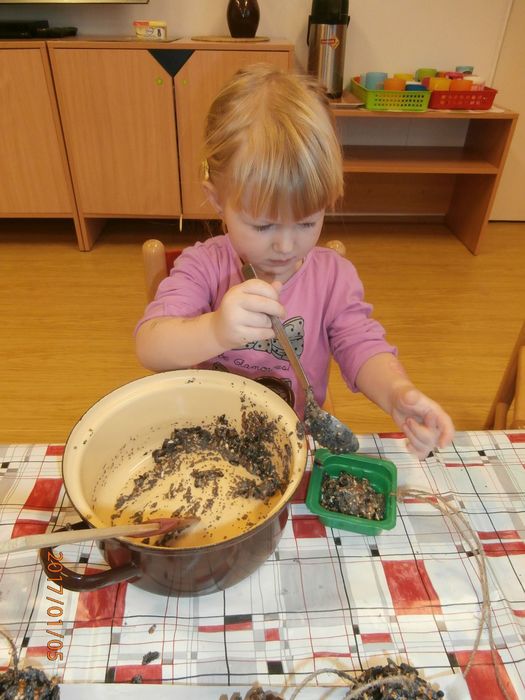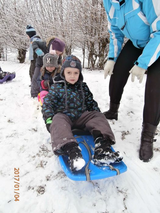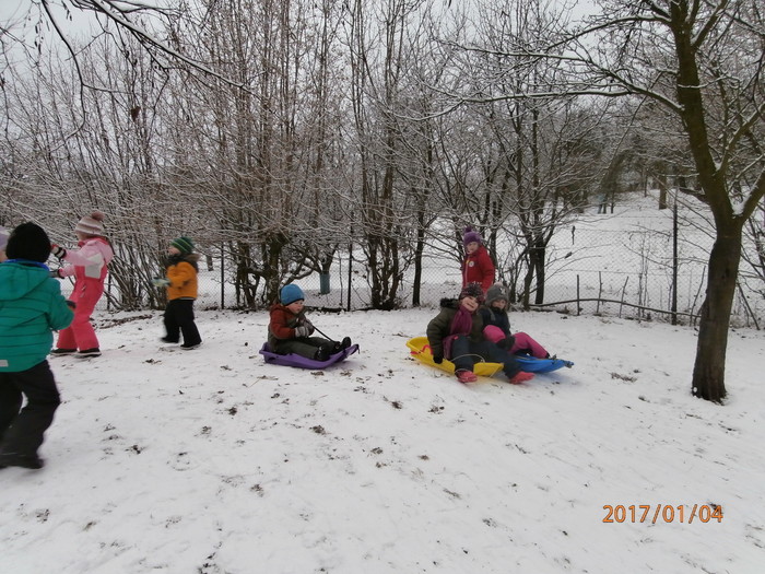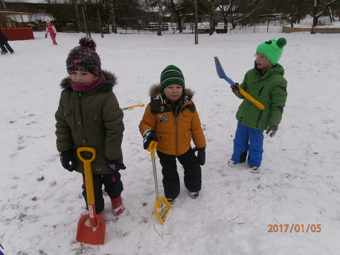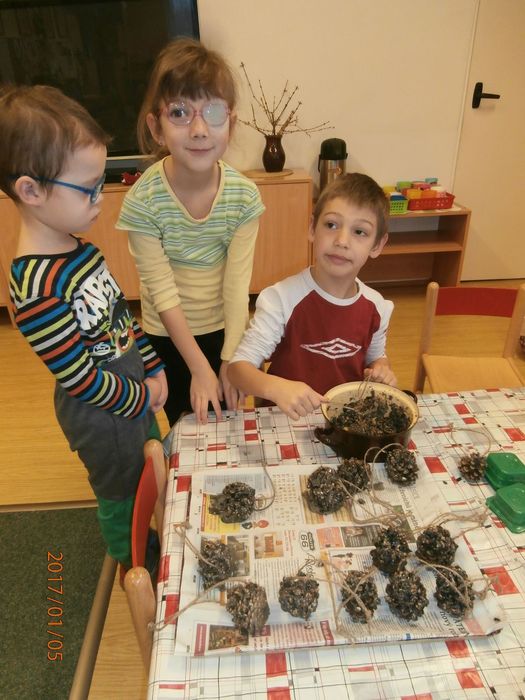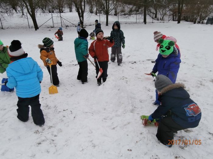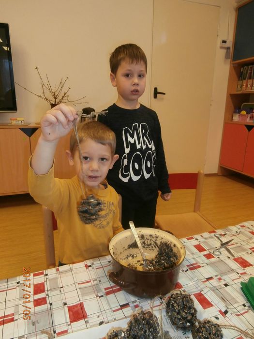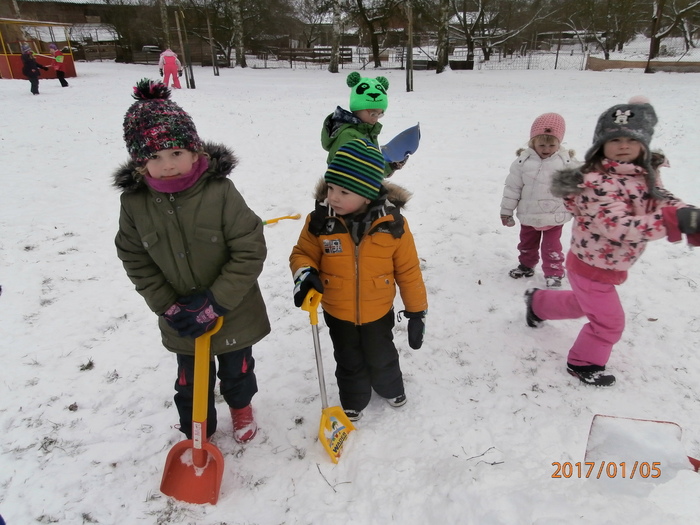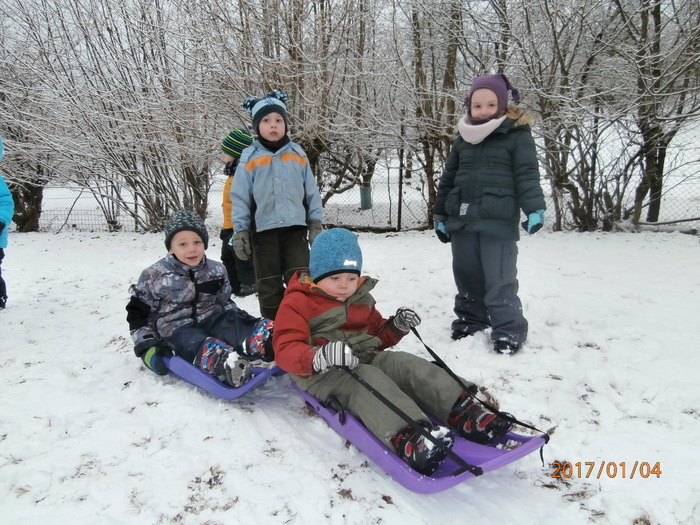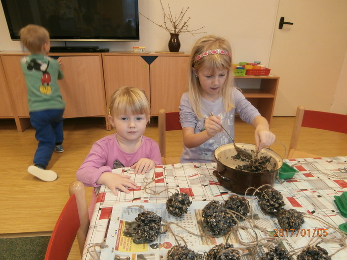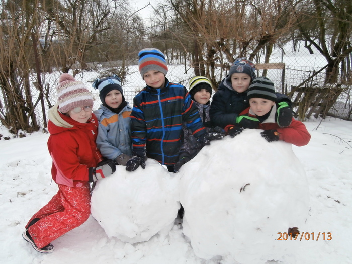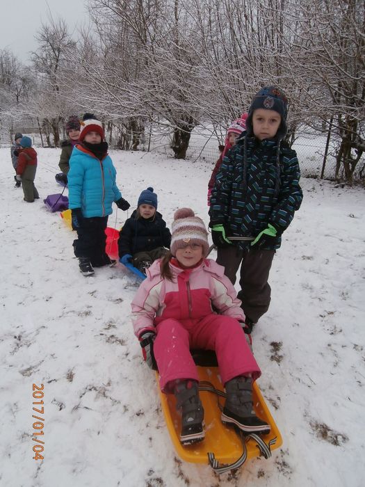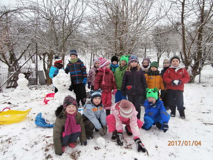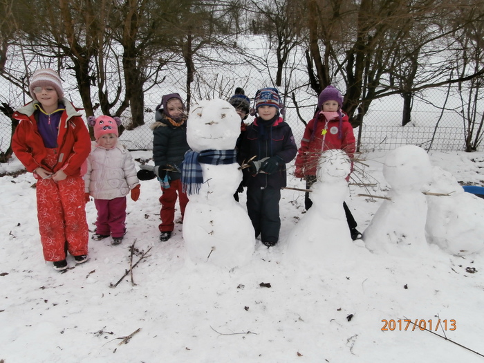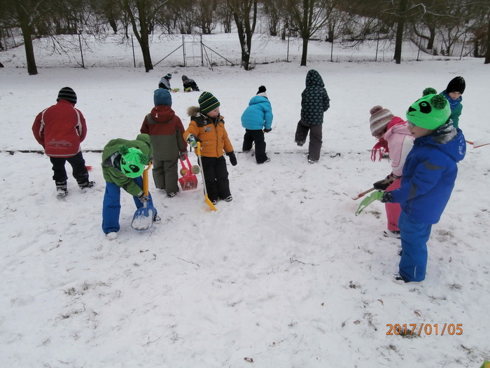 Hned po Vánocích jsme se dočkali větší sněhové nadílky a mohli konečně vytáhnout boby. To bylo radosti! Bobovali jsme, dělali různé sněhové tunely, koulovali se. Sníh stačil dokonce i na několik sněhuláčků. Ptáčkům jsme ozdobili stromeček, který nám ve školce dosloužil, vlastnoručně vyrobenými dobrotami.