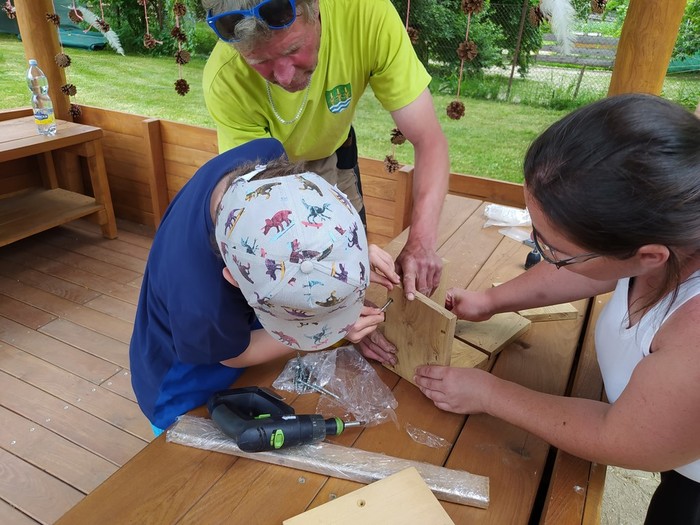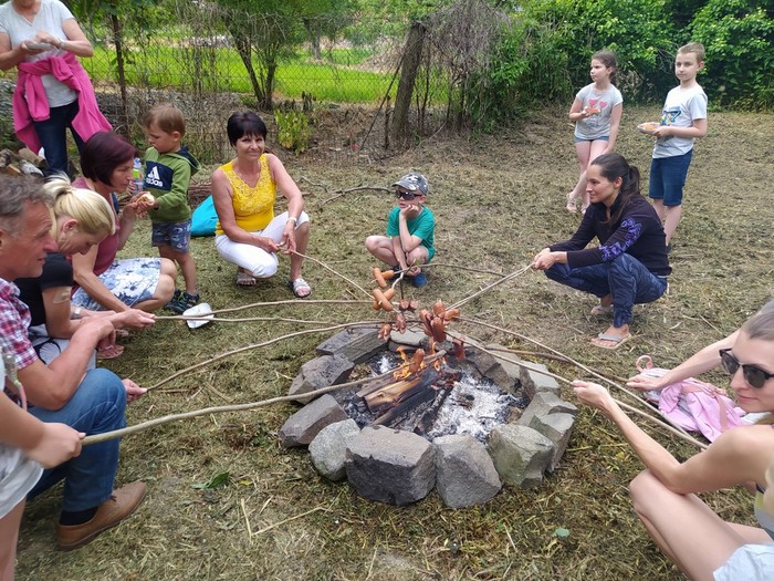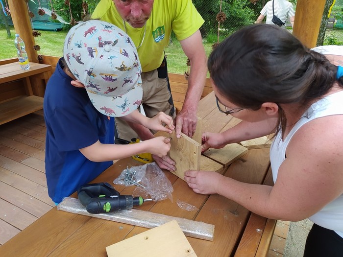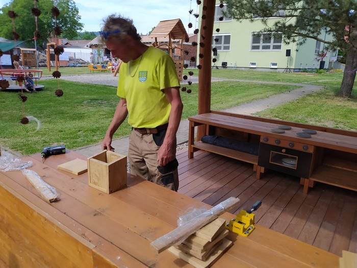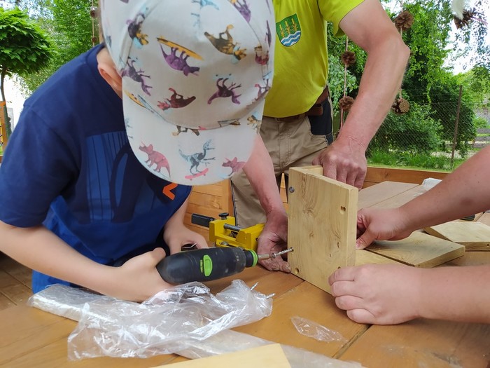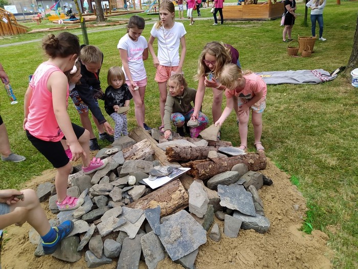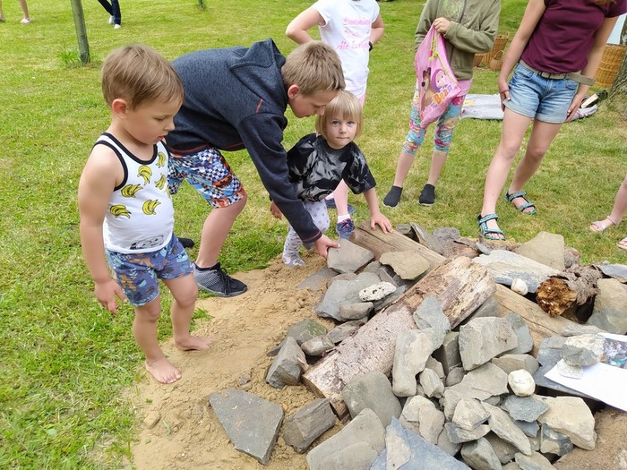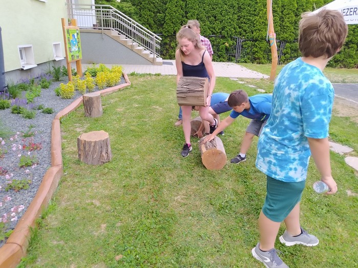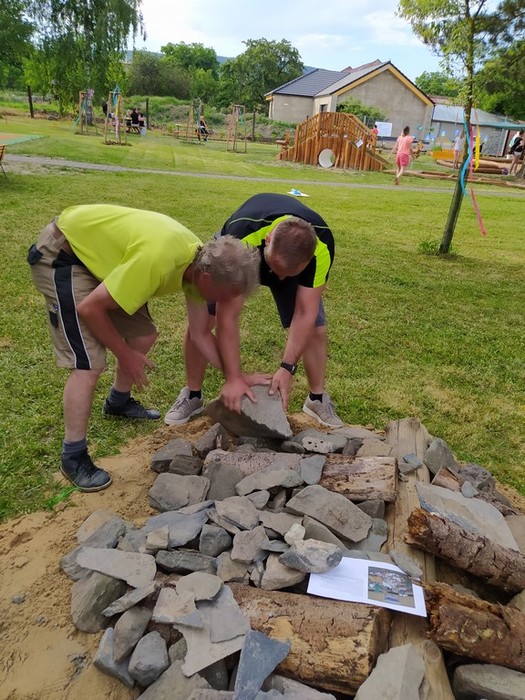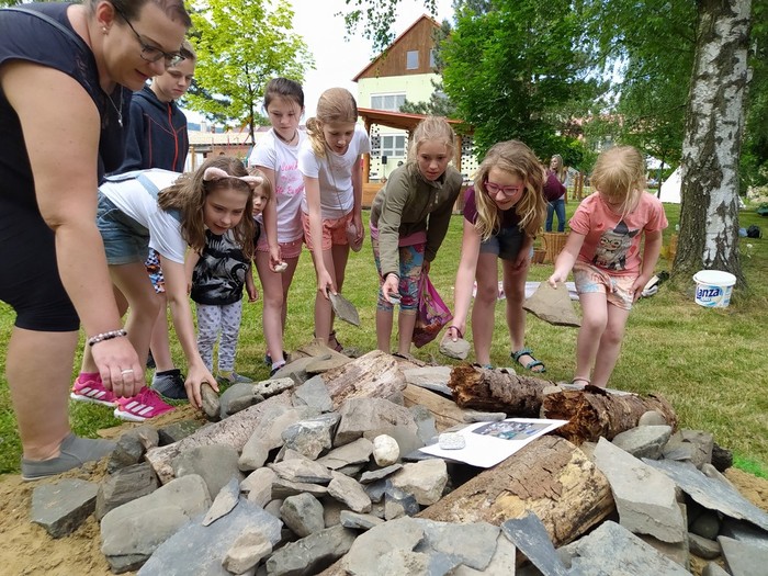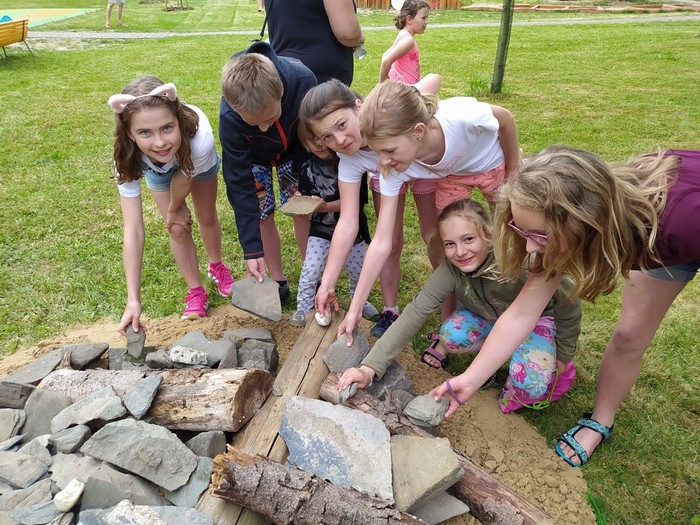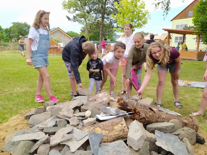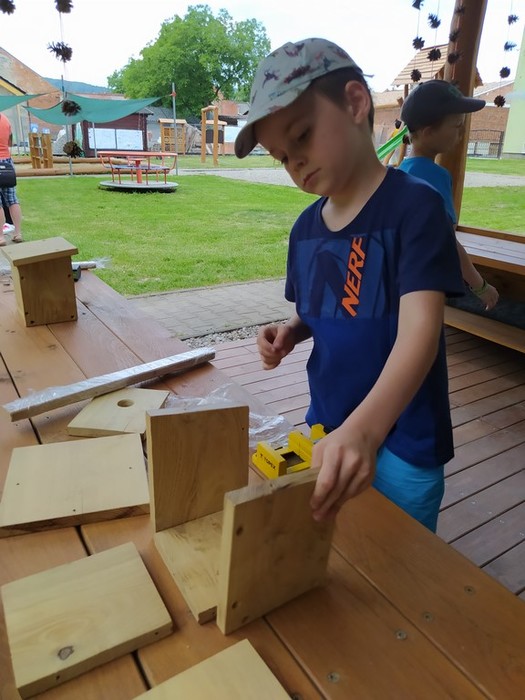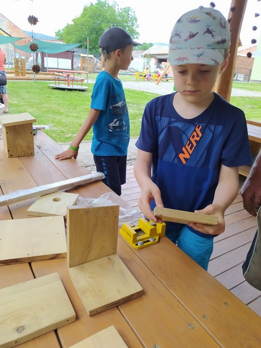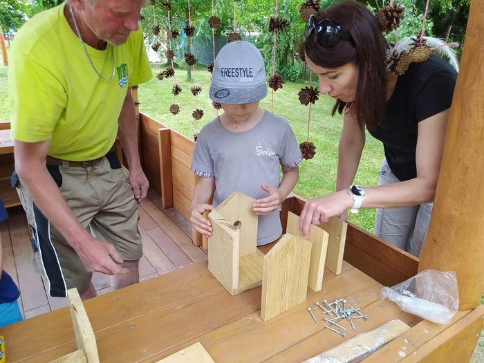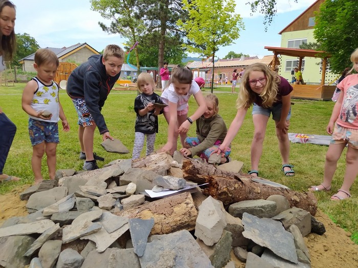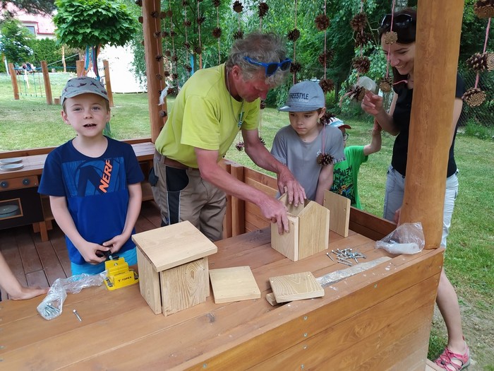 Důležitou součástí dne bylo také postavení ještěrkovníku z přinesených kamenů a stavba ptačích budek do zahrady.