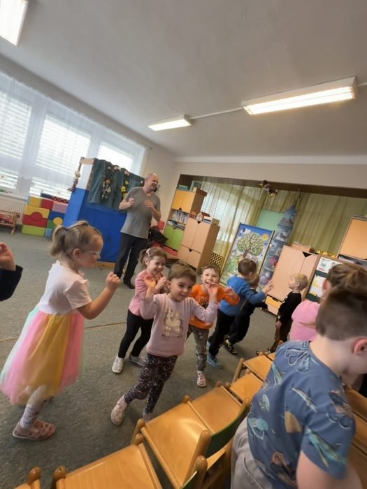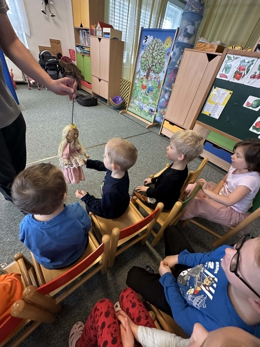 Úvod > Mateřská škola > Fotogalerie MŠ > TÝDEN 16.-20.3.2026, Pan Taraba - loutkové představení (O Šípkové Růžence)