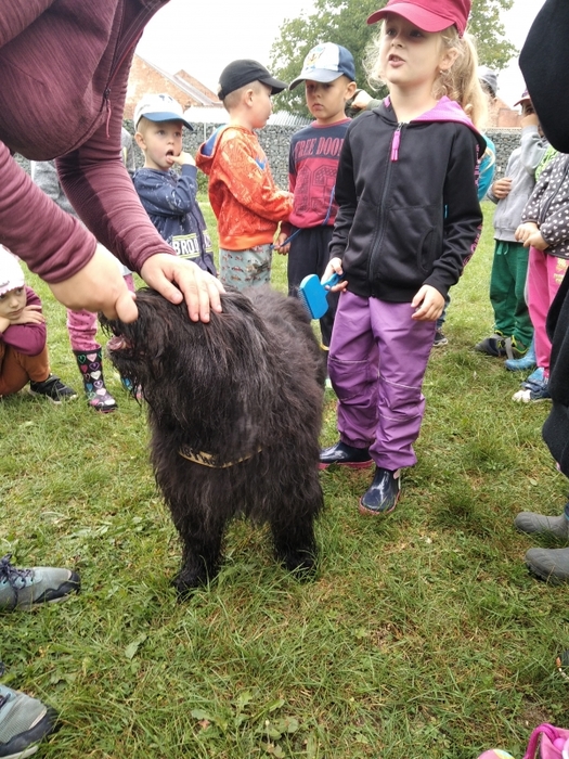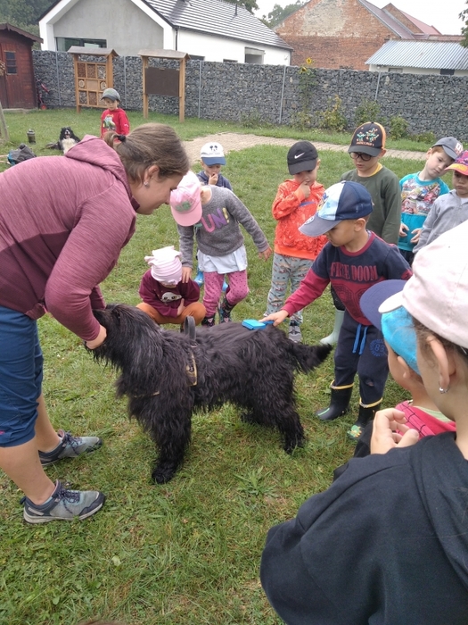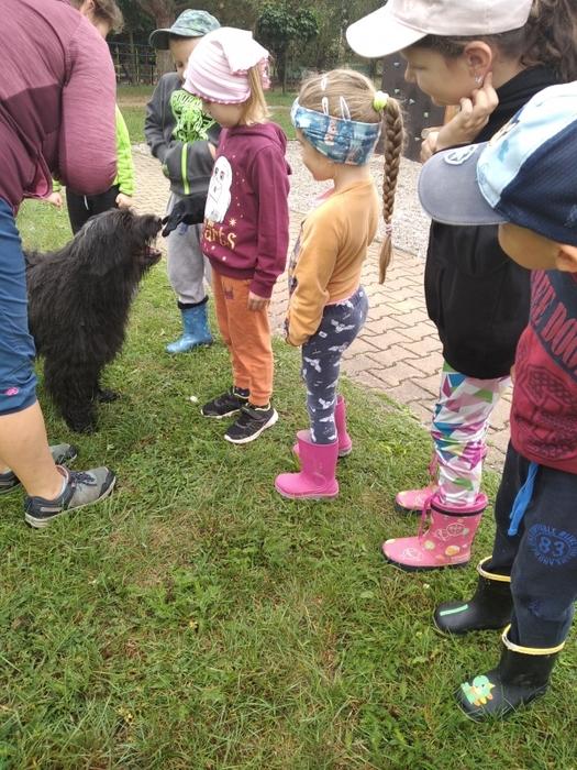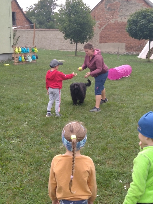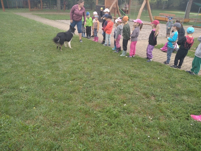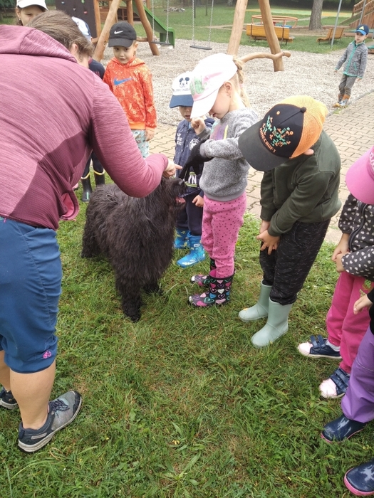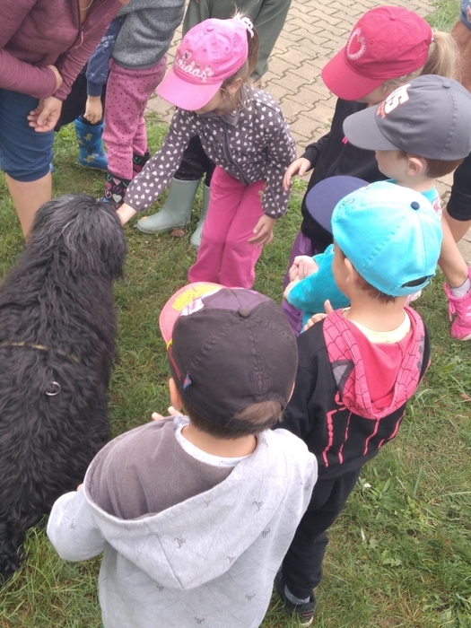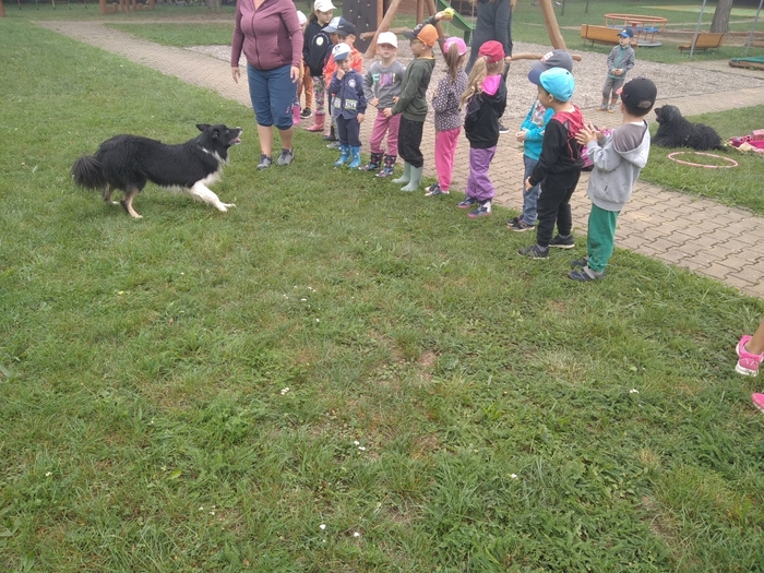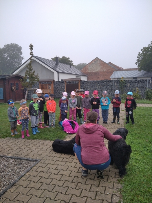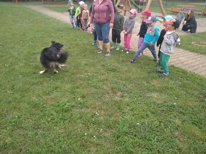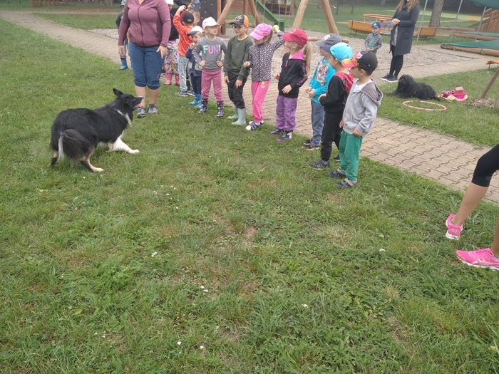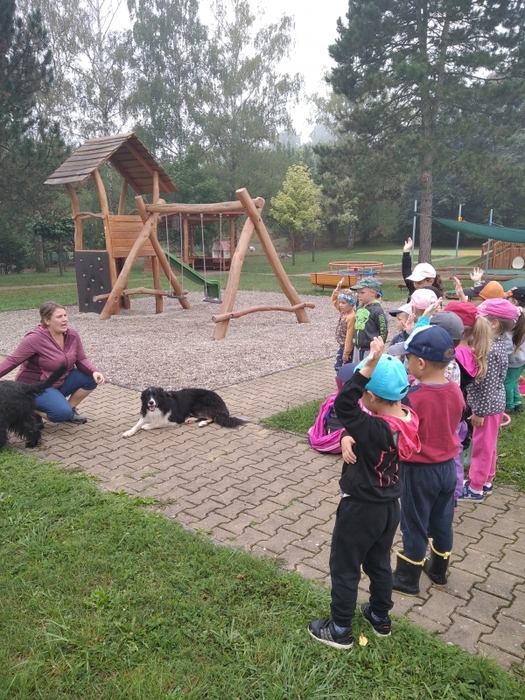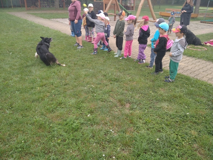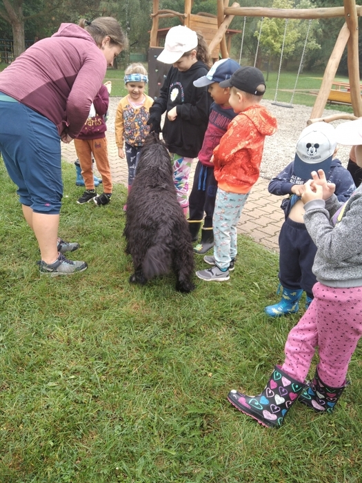Dne 9.9. 20222 nás přijela navštívit paní, která se věnuje výcviku psů a canisterapii. Dětem přivezla ukázat 2 pejsky. Děti si mohly pejsky pohladit, dát jim vodítko, pamlsek nebo také hodit míček. Zkusily si také různé povely. Dětem se to velmi líbilo.