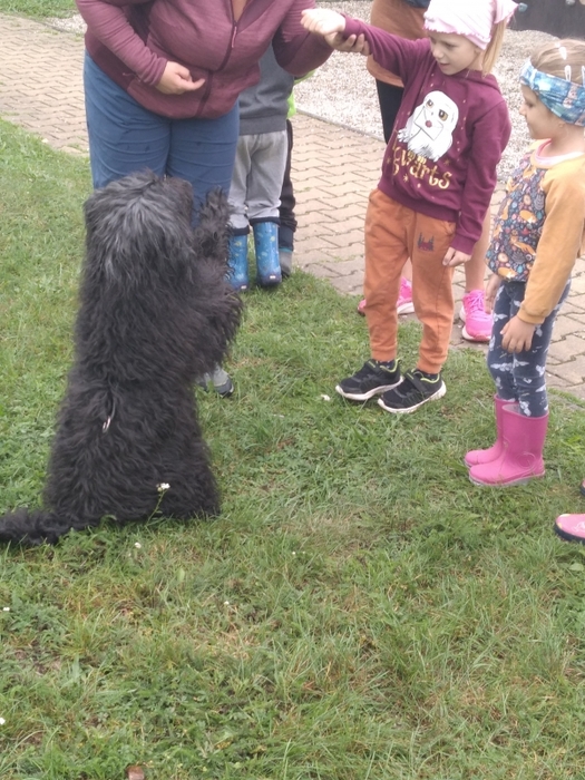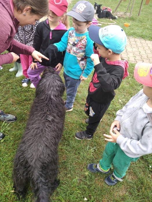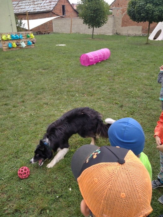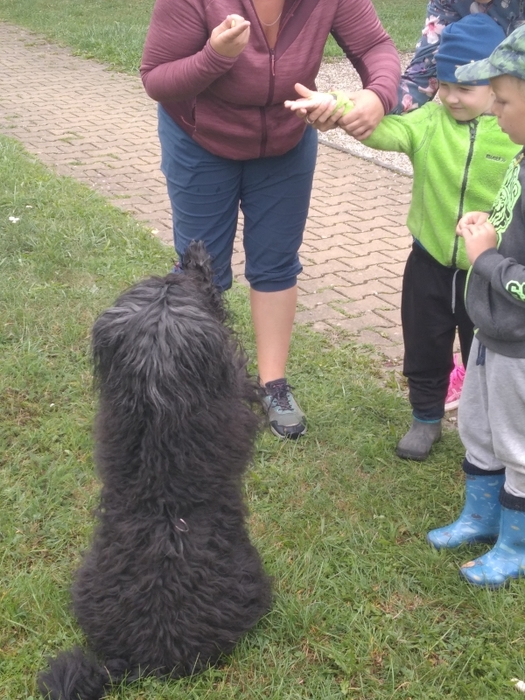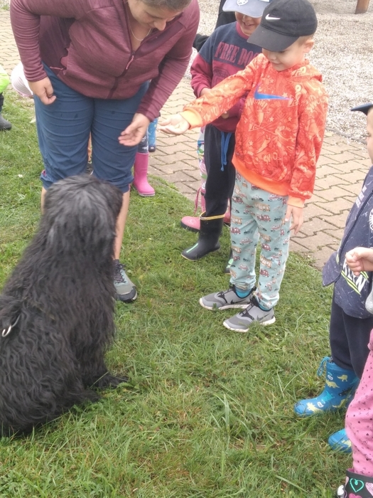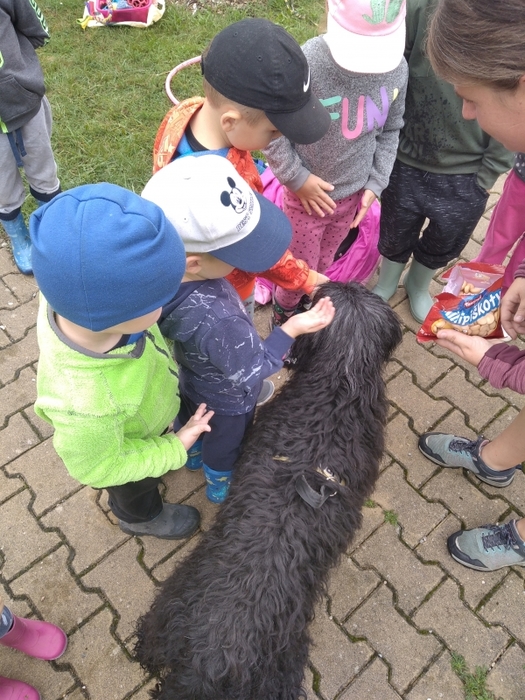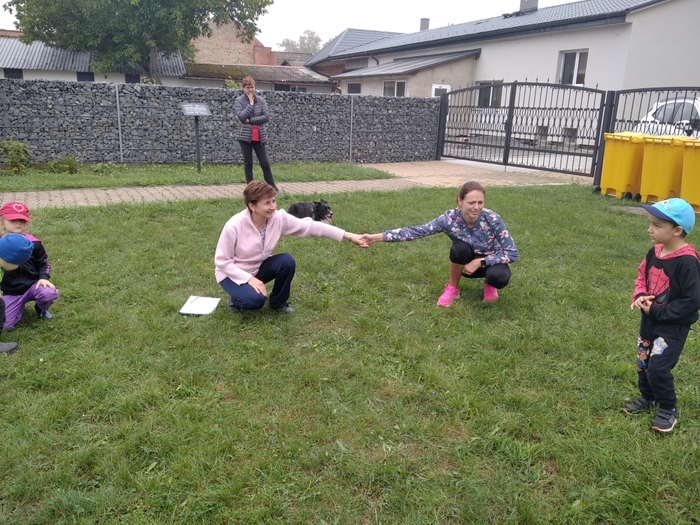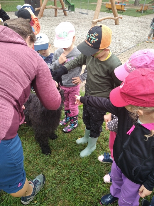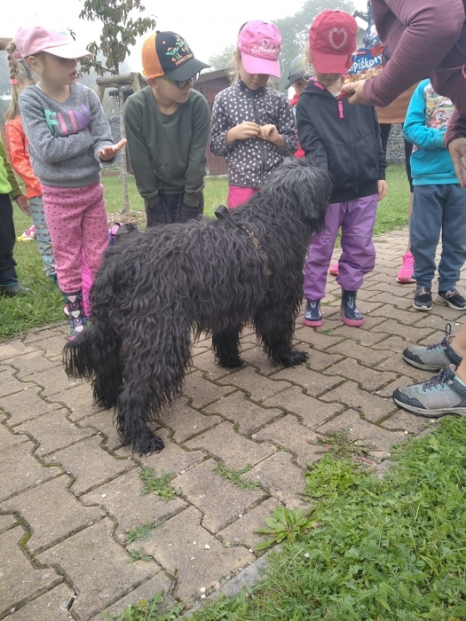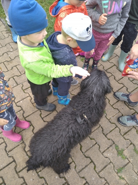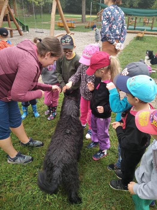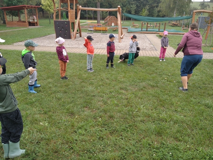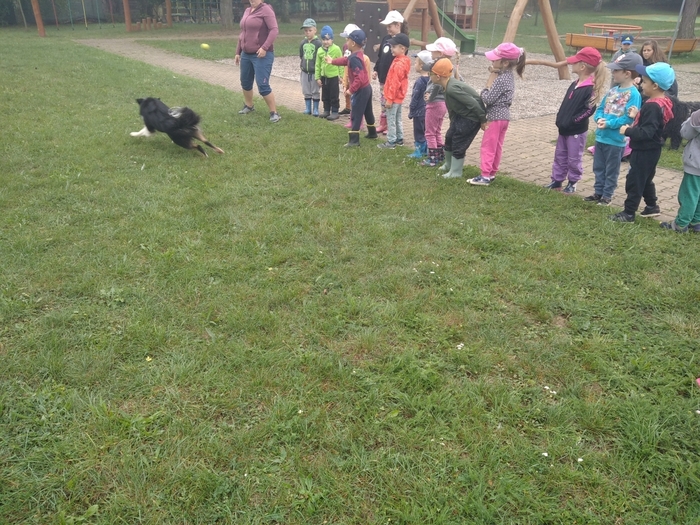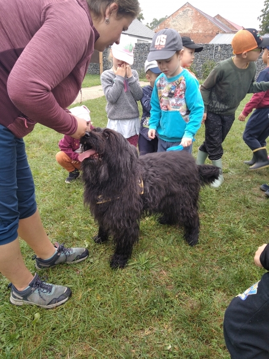 Dne 9.9. 20222 nás přijela navštívit paní, která se věnuje výcviku psů a canisterapii. Dětem přivezla ukázat 2 pejsky. Děti si mohly pejsky pohladit, dát jim vodítko, pamlsek nebo také hodit míček. Zkusily si také různé povely. Dětem se to velmi líbilo.