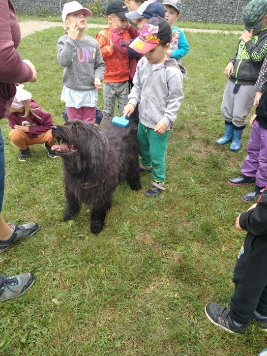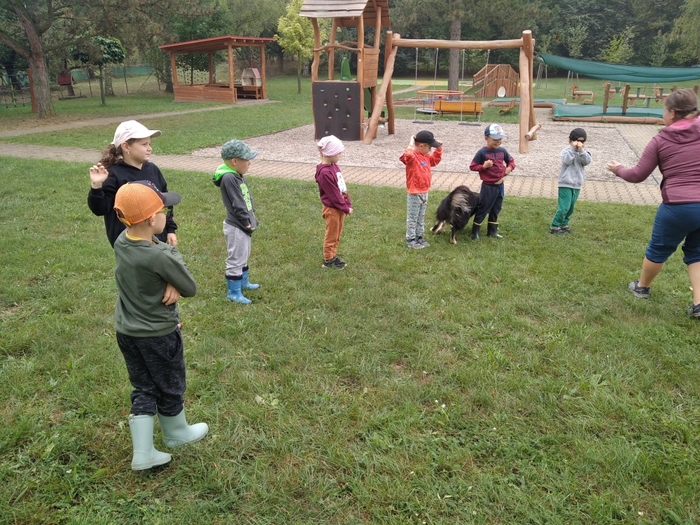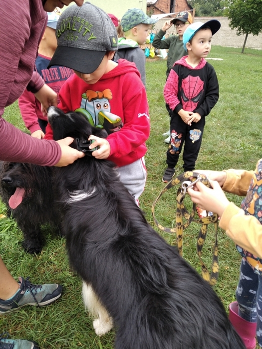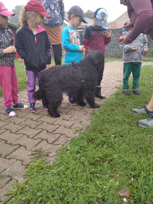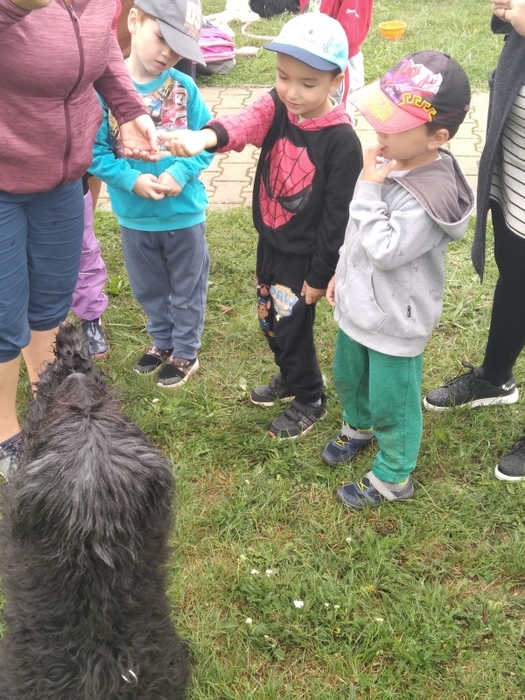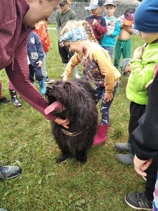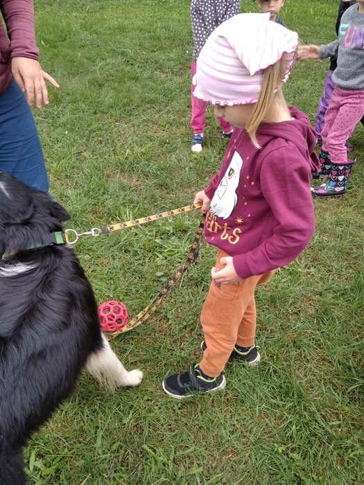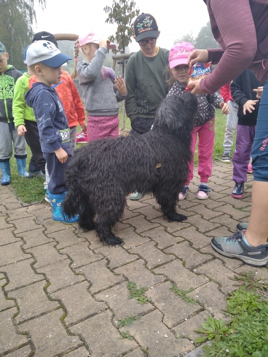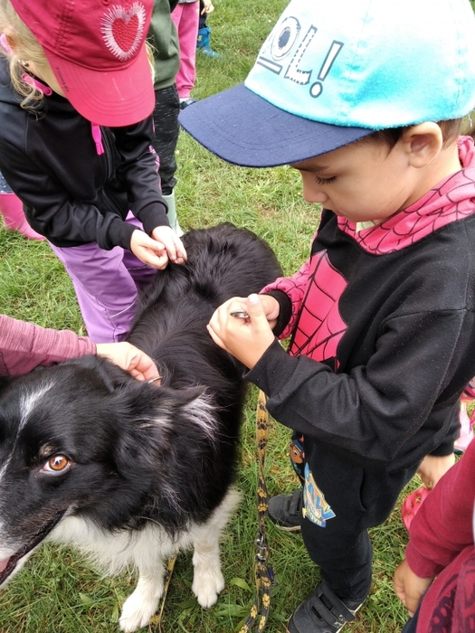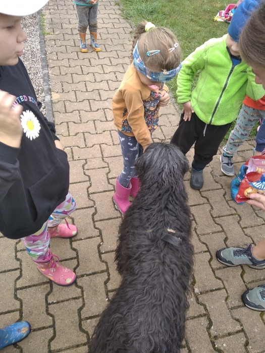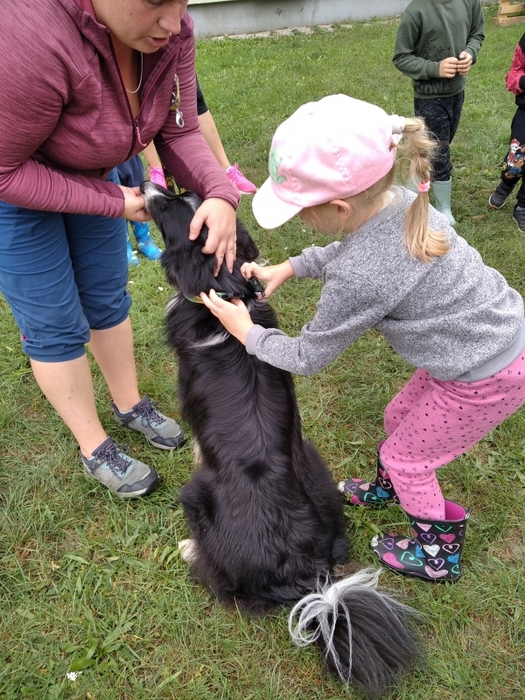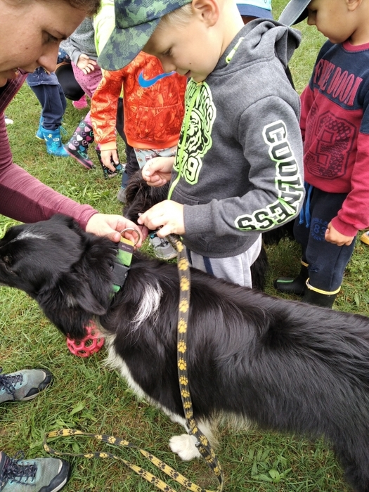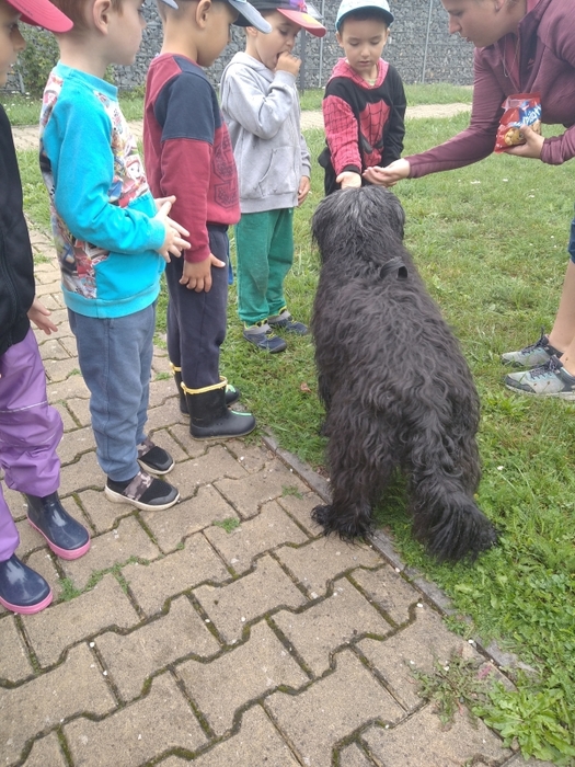 Dne 9.9. 20222 nás přijela navštívit paní, která se věnuje výcviku psů a canisterapii. Dětem přivezla ukázat 2 pejsky. Děti si mohly pejsky pohladit, dát jim vodítko, pamlsek nebo také hodit míček. Zkusily si také různé povely. Dětem se to velmi líbilo.