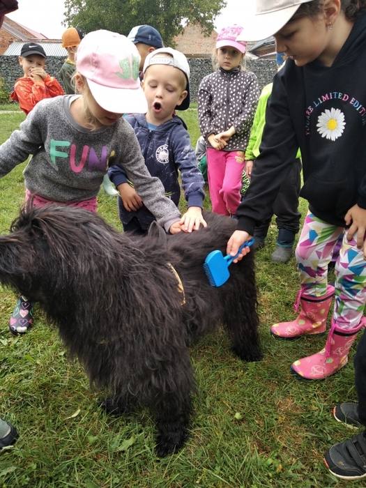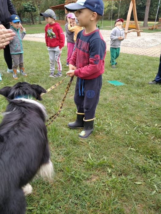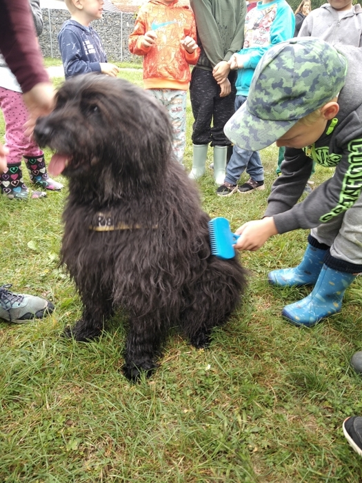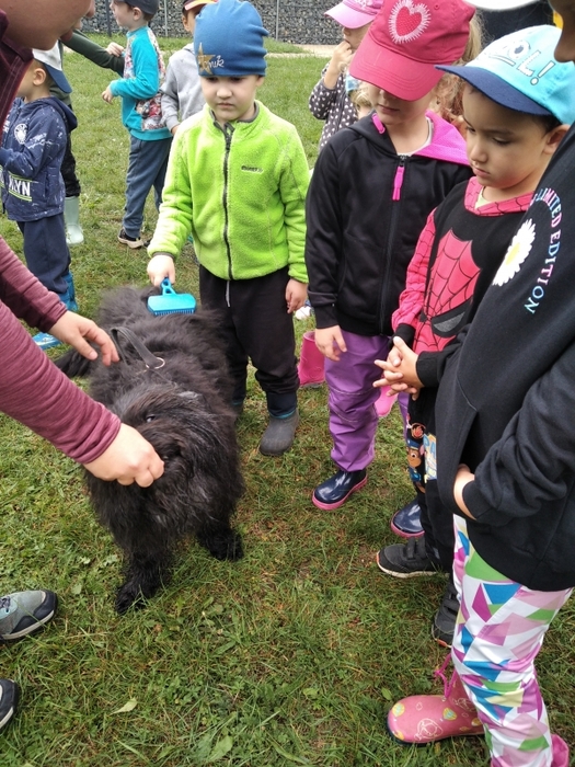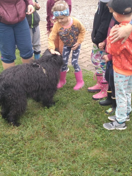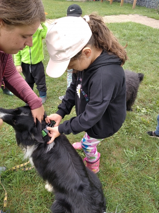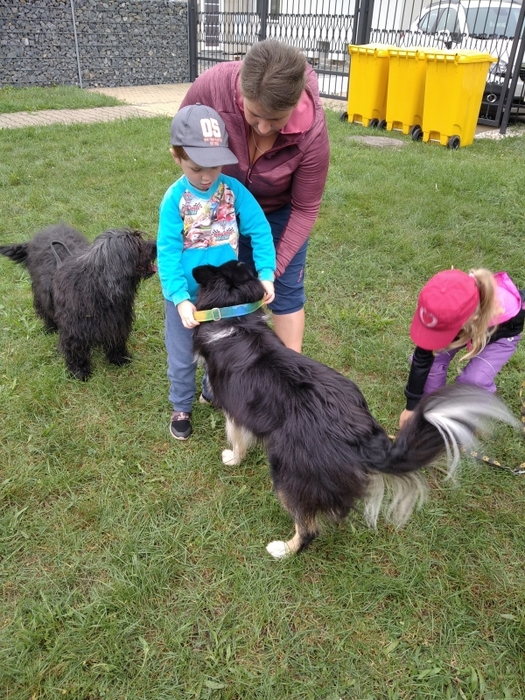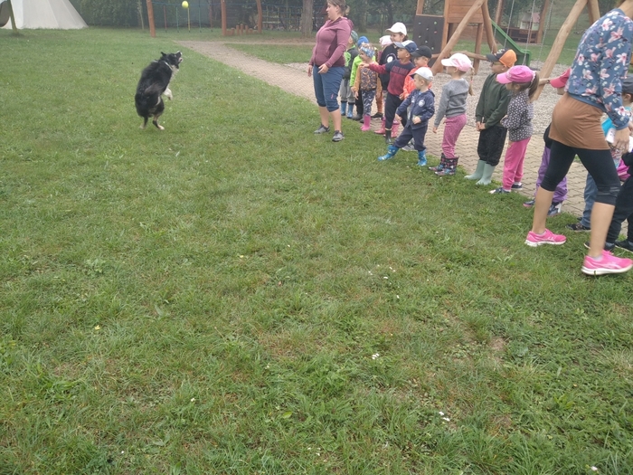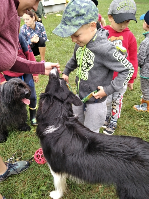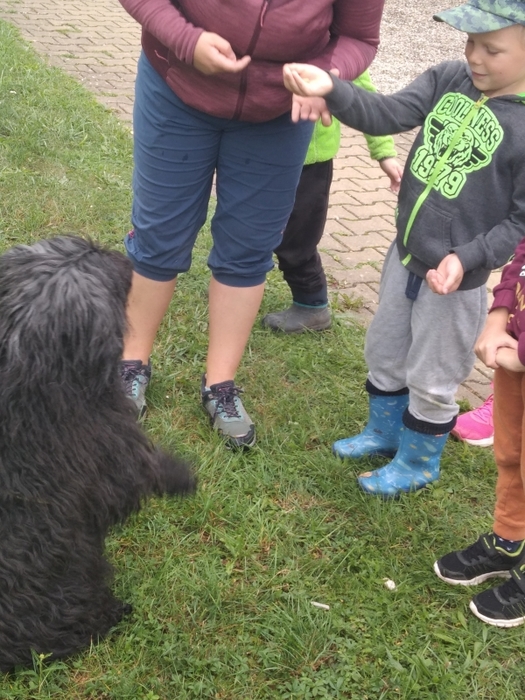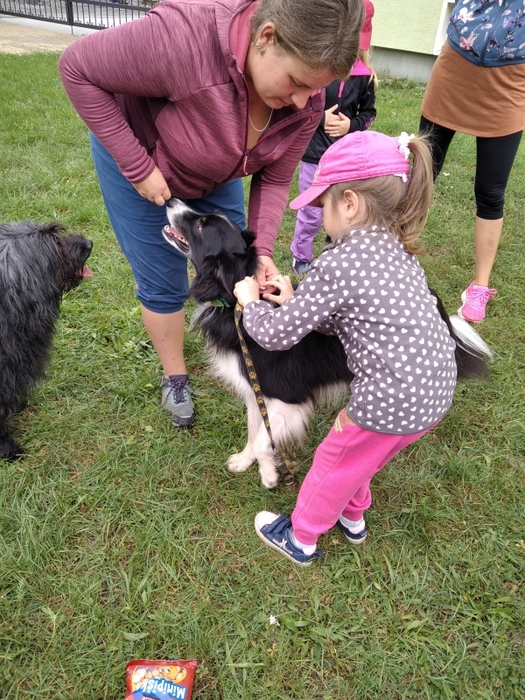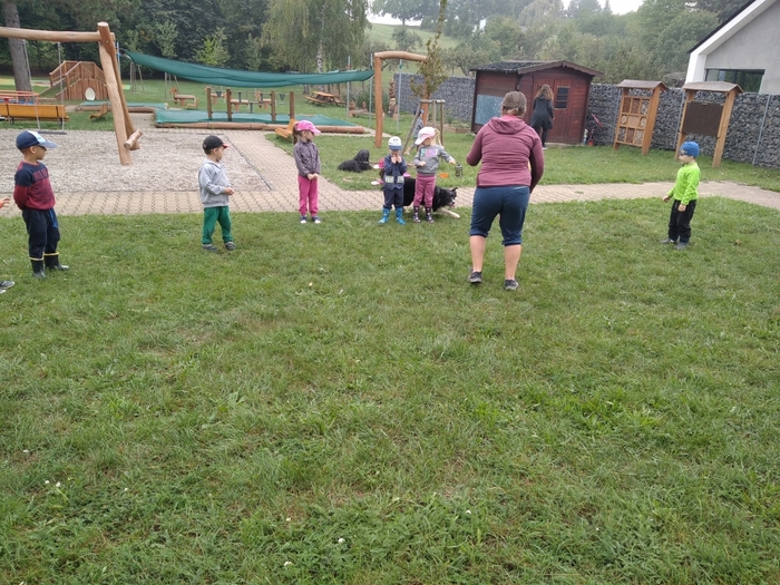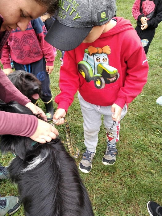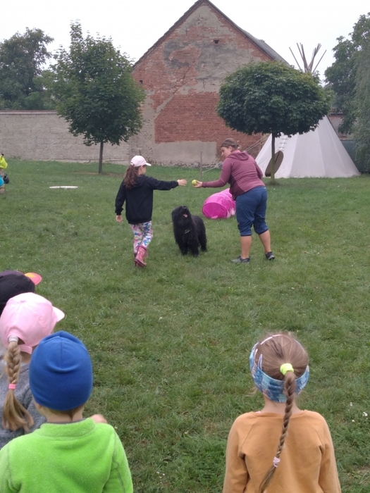 Dne 9.9. 20222 nás přijela navštívit paní, která se věnuje výcviku psů a canisterapii. Dětem přivezla ukázat 2 pejsky. Děti si mohly pejsky pohladit, dát jim vodítko, pamlsek nebo také hodit míček. Zkusily si také různé povely. Dětem se to velmi líbilo.