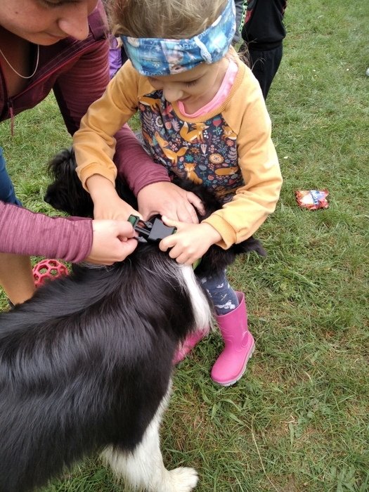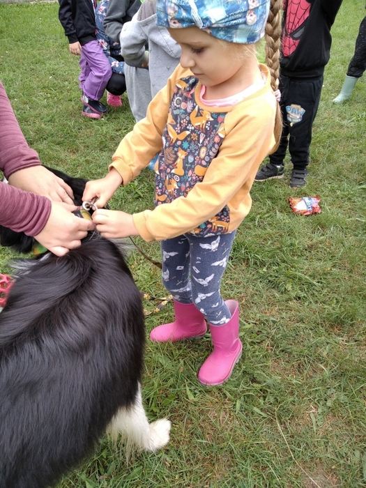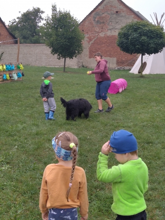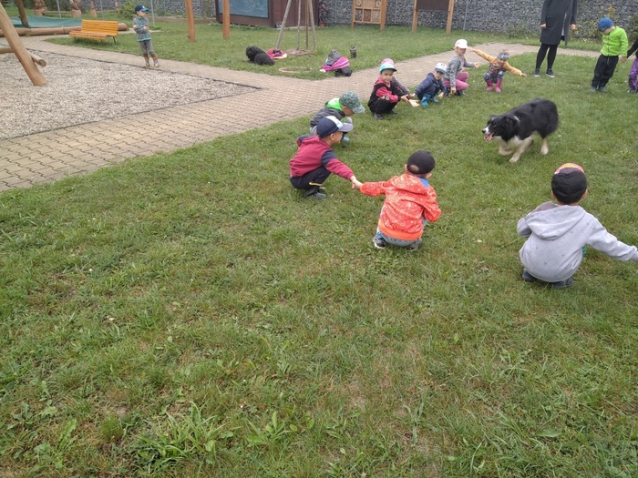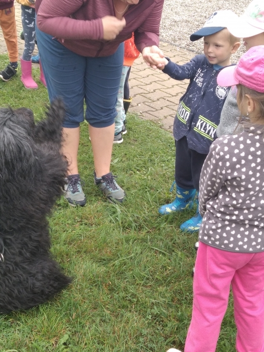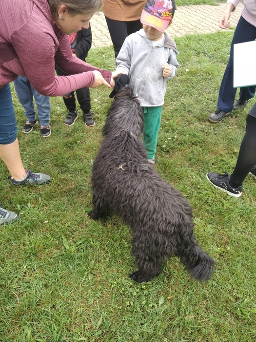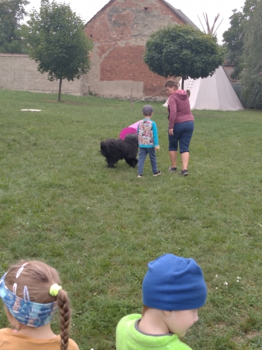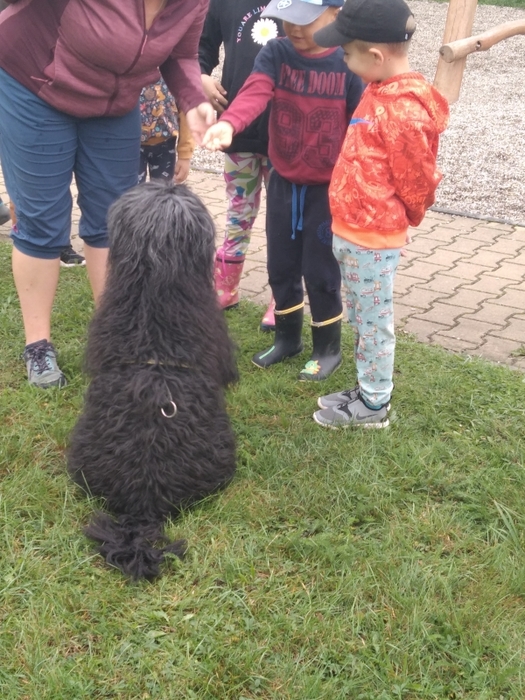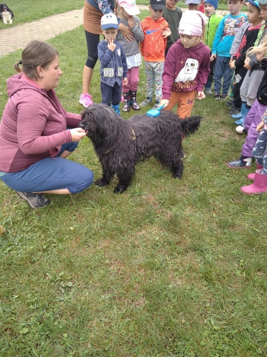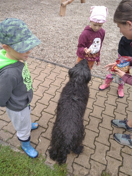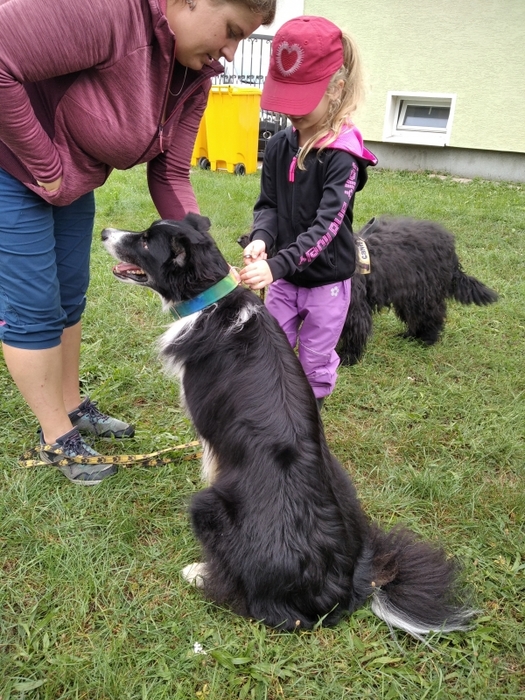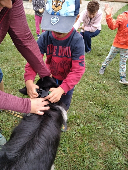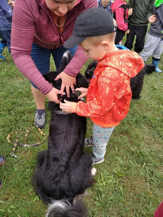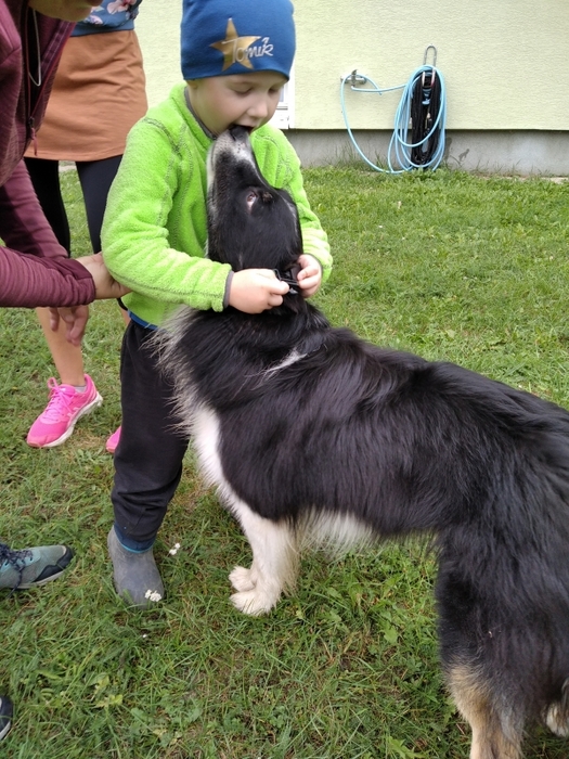 Dne 9.9. 20222 nás přijela navštívit paní, která se věnuje výcviku psů a canisterapii. Dětem přivezla ukázat 2 pejsky. Děti si mohly pejsky pohladit, dát jim vodítko, pamlsek nebo také hodit míček. Zkusily si také různé povely. Dětem se to velmi líbilo.