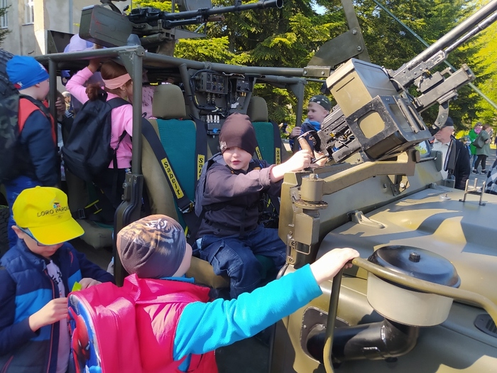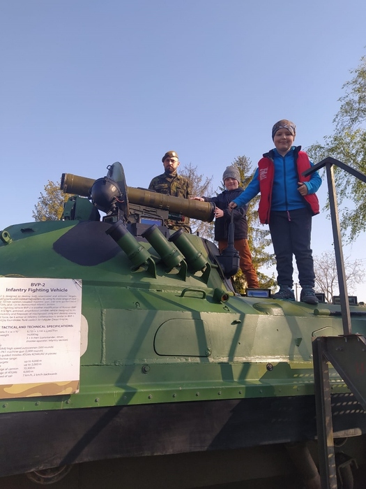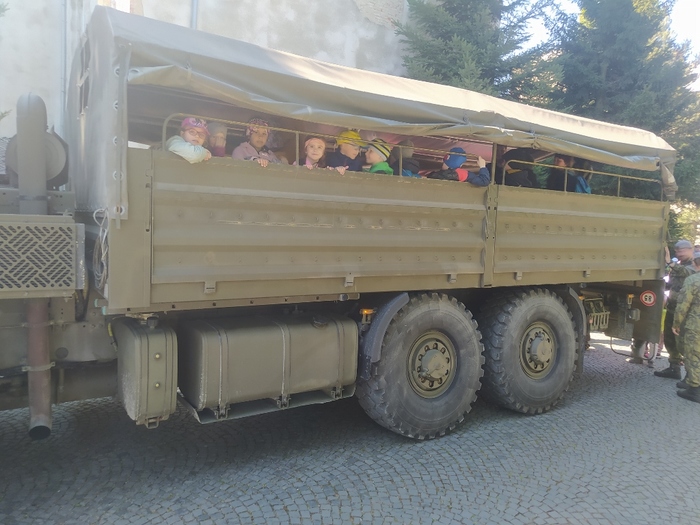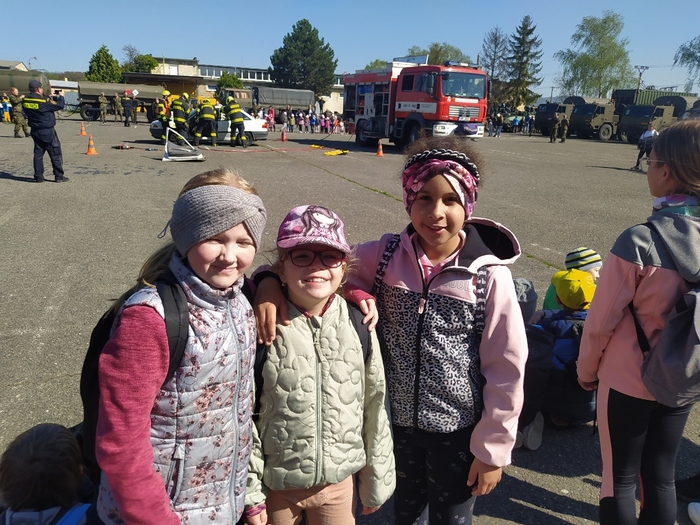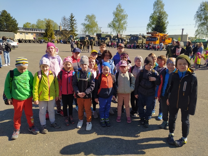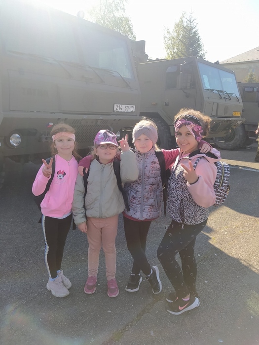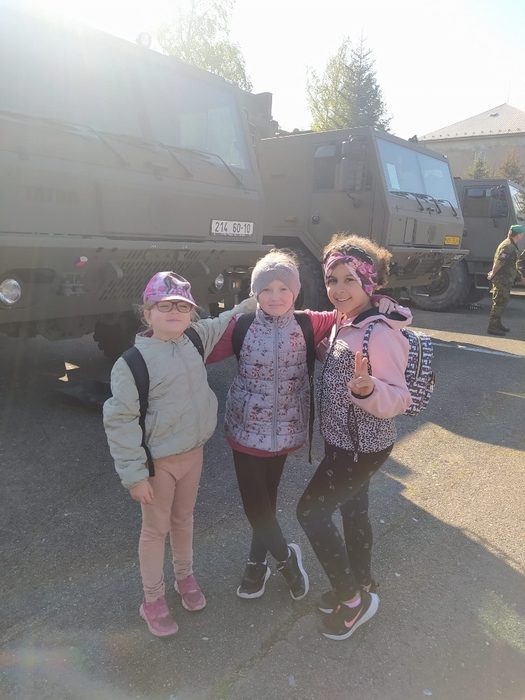 Ve čtvrtek 4. 5. jsme opět byli pozváni do kasáren v Lipníku nad Bečvou, abychom si užili den otevřených dveří, výstavu techniky a další atrakce. Děti ze školy a školky během dopoledne všechno pořádně prošmejdily, vlezly do bojových a podpůrných vozidel, prohlédly si zbraně moderní i historické, zkusily si opičí dráhy, ochutnaly vojenskou stravu z polní kuchyně a jako správní vojáci se také svezly na korbě vojenského náklaďáku. Samozřejmě si odnesly spoustu suvenýrů a drobných dárků.