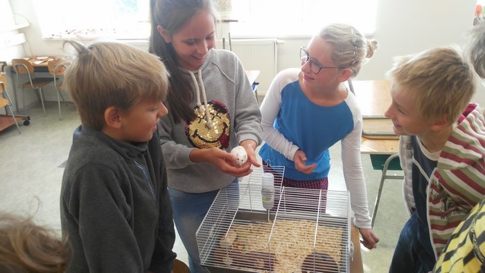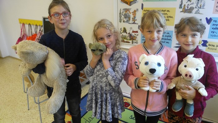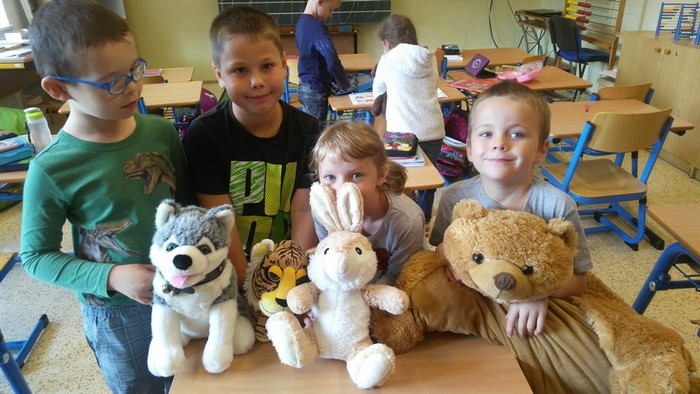 Světový den zvířat se tradičně slaví 4. 10., na jmeniny sv. Františka z Assisi. My v tento den pojedeme na oslavy lesa do Olomouce, proto jsme zvířátka a se zvířátky slavili už 3. 10. Někteří si přinesli své živé mazlíčky (králíčci, křečci a dokonce agama), jiní přinesli alespoň svá milá plyšová zvířátka. V českém jazyce a v angličtině jsme se bavili o zvířatech a trénovali jejich popis. Povídali jsme si také o tom, jaké to je starat se o živého tvora. Nakonec jsme nějaká zvířátka využili i v tělocviku. Celý den mohli být mladí chovatelé na sebe hrdí.