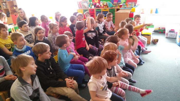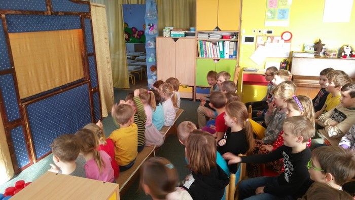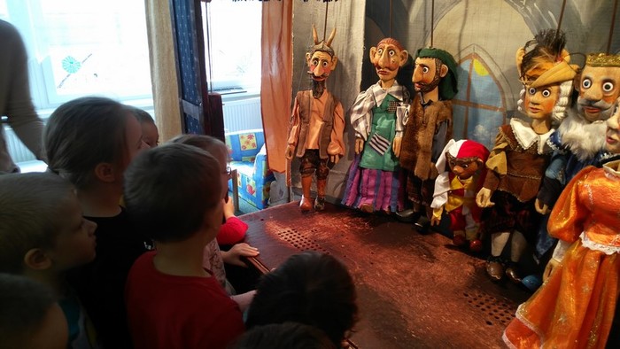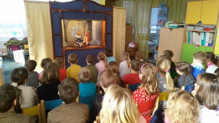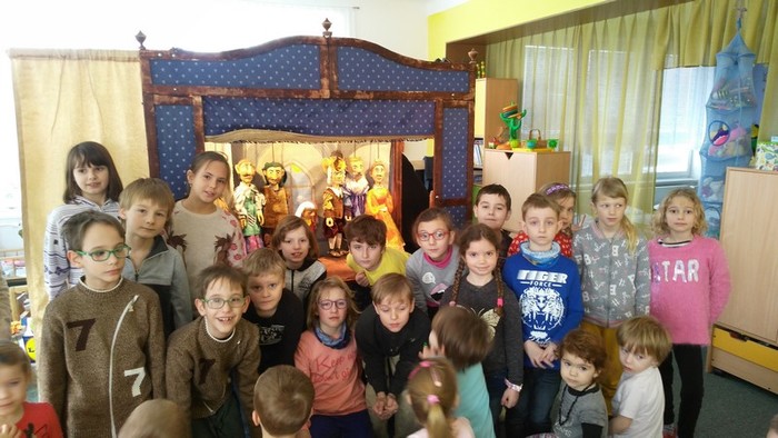 Do školky přijely marionety a zahrály nám pěkné a humorné představení o tom, jak kašpárek zachránil princeznu před sňatkem s čertem. Představení shlédly děti ze školy a ze školky. Moc se líbilo. Děti se smály, radily Kašpárkovi a na závěr nadšeně zatleskaly hercům.