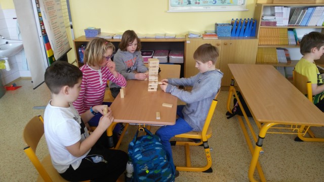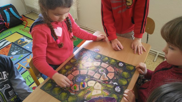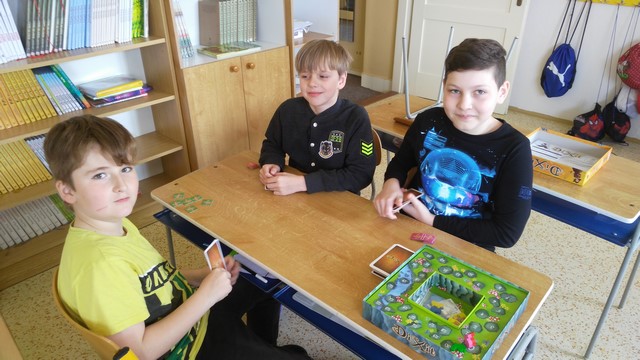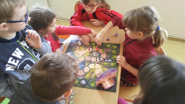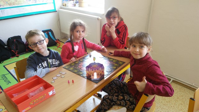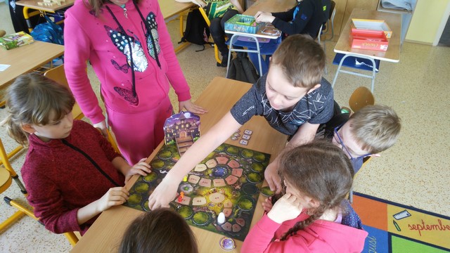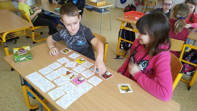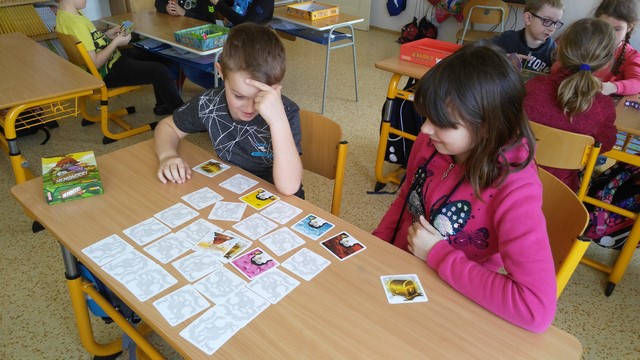 Velice jsme si oblíbili hru na rozvoj slovních asociací - Dixit. Mladší žáci mají rádi Výpravu čarodějů, skvělou kooperativní hru, která rozvíjí paměť a vyžaduje od hráčů na rozdíl od jiných her, aby si pomáhali.