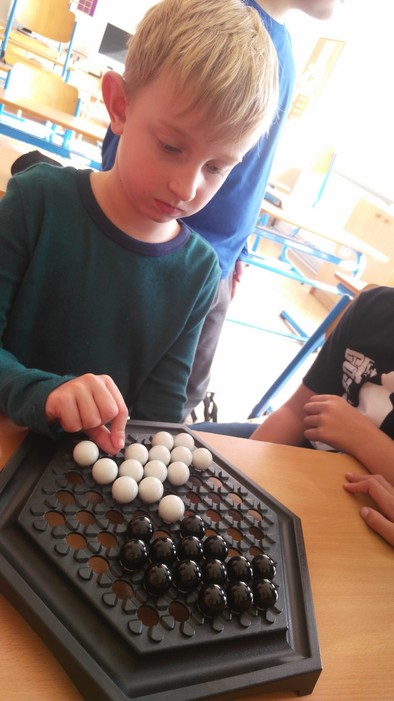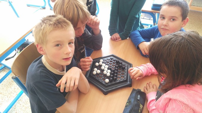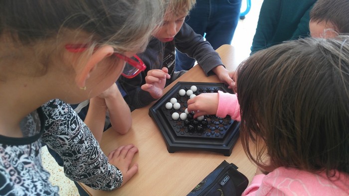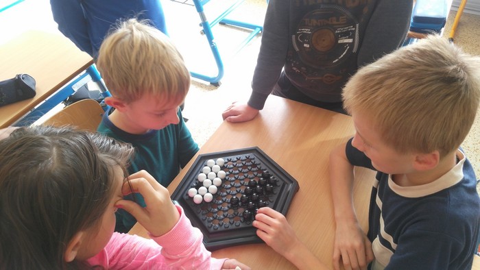 Žáci se v kroužku logiky a deskových her seznámili se hrou Abalone. Je to strategická hra s jednoduchými pravidly, kdy je potřeba vytlačovat kameny soupeře z hrací plochy.