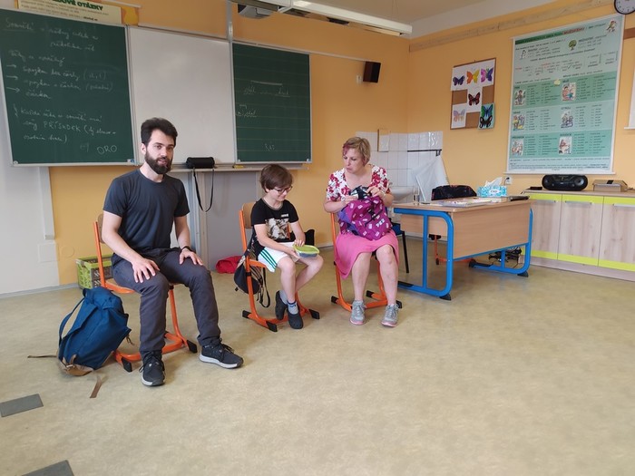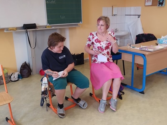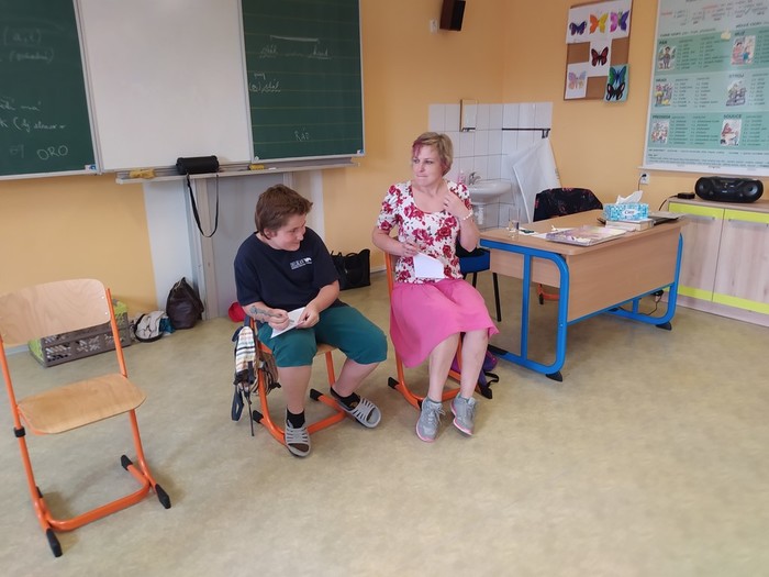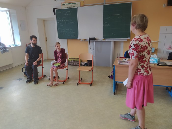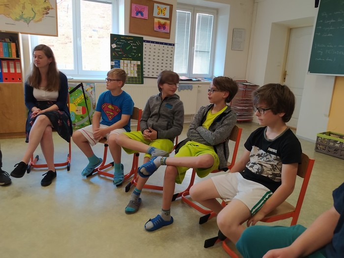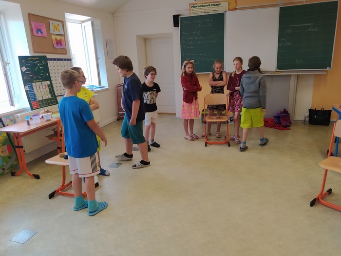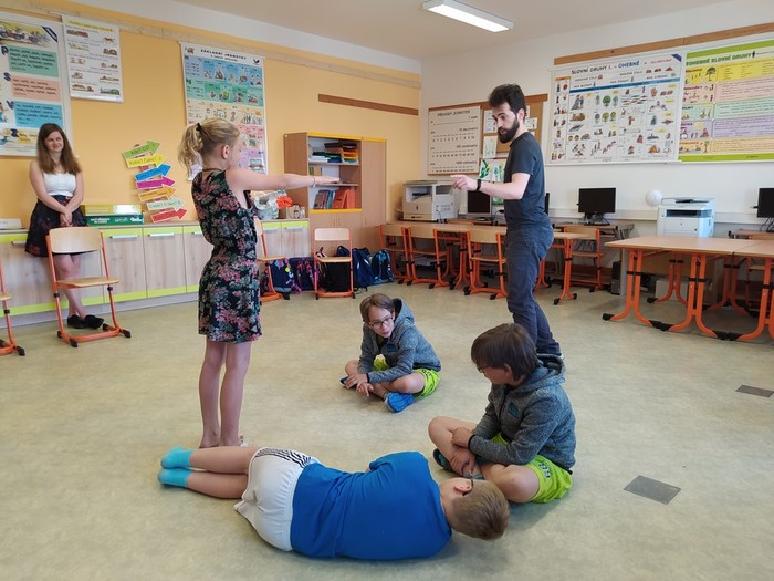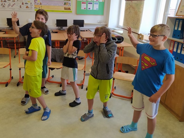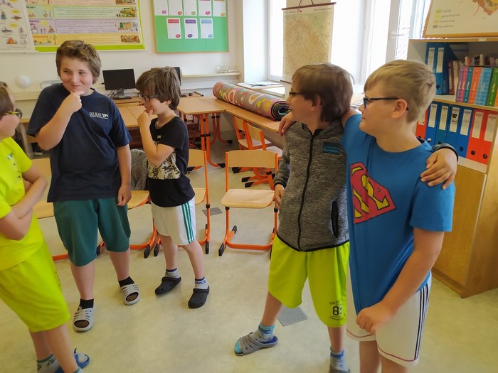 V pátek 11. 6. se starší žáci zúčastnili dramatizačního programu, ve kterém sledovali a vžívali se do příběhu 3 kamarádů, mezi kterými se začaly objevovat problémy ve vztahu: jako ochladnutí kamarádství, manipulace, pomlouvání, přetvařování, urážení, zesměšňování. Postupně společně postavu trochu zakřiknuté a ukřivděné Emy přetvářeli, aby dokázala stát za svým, aby se uměla ozvat v pravou chvíli a aby vyhodnotila, co je ještě kamarádské vtipkování a kde má nastavit hranice.