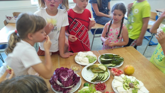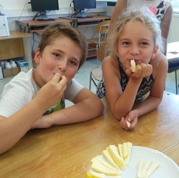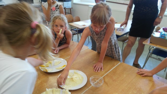 Protože škola odebírá celoročně Mléko do škol a také Ovoce a zeleninu do škol, dostali žáci ovocné, zeleninové a mléčné koše na ochutnávku. Ochutnávka nám tak zpestřila poslední červnové dny.