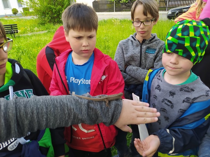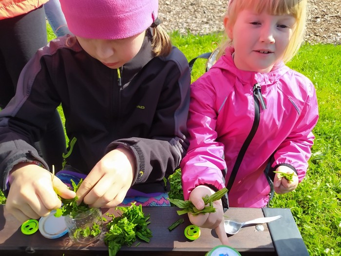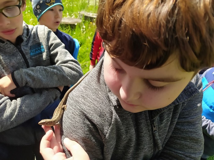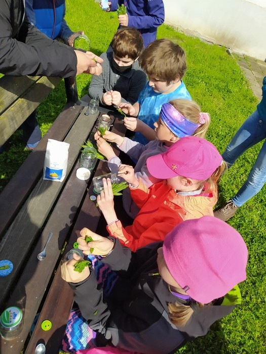 V lužním lese v Lýskách u Přerova jsme se od zkušené bylinkářky dozvěděli, co všechno můžeme na procházce lesem či loukou sníst. Ochutnali jsme samozřejmě a zjišťovali, jaké chutě nám bylinky připomínají. Jednalo se vlastně o většinou běžné rostliny, žádné speciální bylinky. Víte, že kozí noha chutná jako petržel? A pastuší tobolka jako kedluben? A že svízel připomíná hrášek a kopřiva okurek? Víte, že sedmikrásky jsou bohaté na vitamín C? My teď už ano. Děti se seznámily (a ochutnaly) 12 rostlin a vyrobily si také vlastní jitrocelový sirup. Dokonce se nám podařilo prohlédnout si listonoha a na návštěvu přišla i ještěrka.