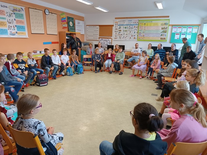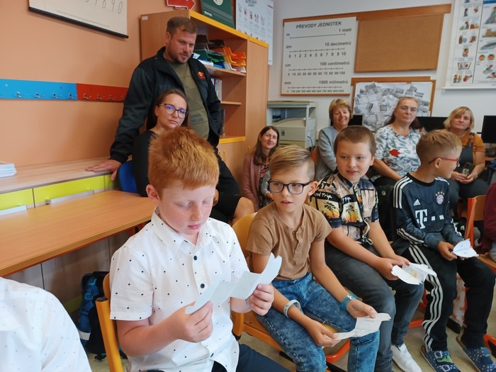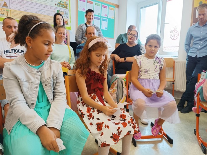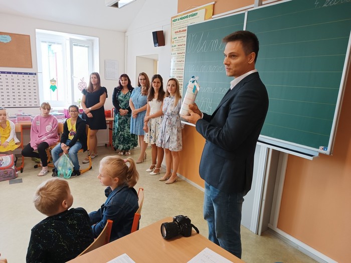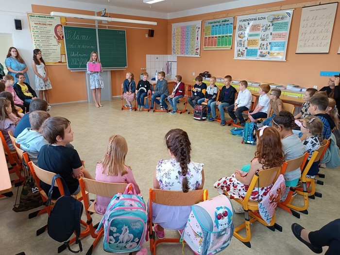 V pondělí 4. září 2023 jsme zahájili školní rok. K rodičům a žákům promluvili pan starosta Zdeněk Panák a pan ředitel Jaroslav Mihal. Představili se také učitelky a asistentky pedagoga. Poté byly pro děti připraveny zajímavé aktivity, které navozovaly atmosféru vzájemnosti a sdílení. Děkujeme velkému počtu rodičů, kteří na první den své děti do školy doprovodili.