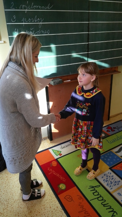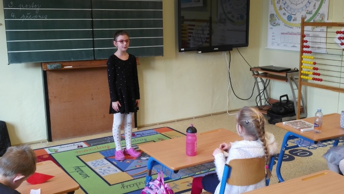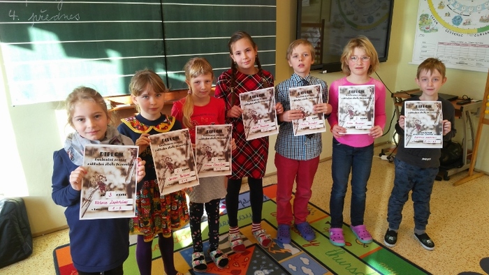 V pátek 15. 2. proběhla celoškolní recitační soutěž. Žáci si připravili pěkné básničky a řada z nich přišla také v pěkném svátečním oblečení, aby umělecký dojem byl co nejlepší. Nejlepší přednes v kategorii 1. - 3. třída předvedly Elenka Šimečková (1.), Janička Pročková (2.) a Viktorka Zapletalová (3.); v kategorii 4. - 5. třídy byli nejlepší recitátoři Anička Panáková (1.), Marek Dohnal (2.) a Eliška Pacáková (3.). Gratulujeme. Z vítězů vybereme postupující do okresního kola v Přerově.
