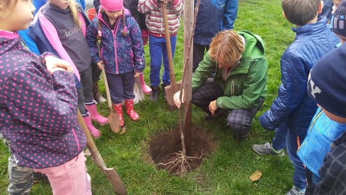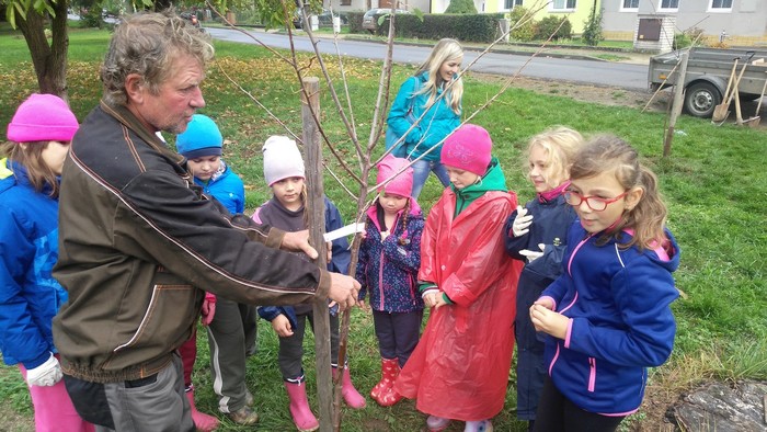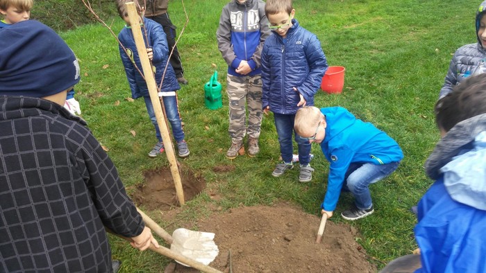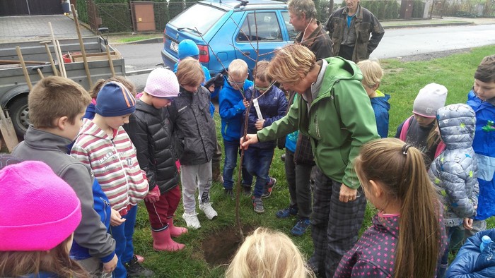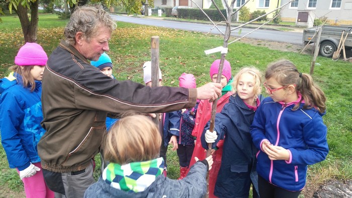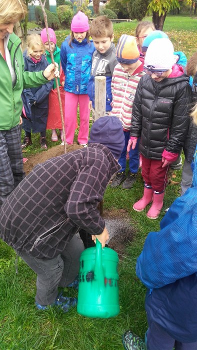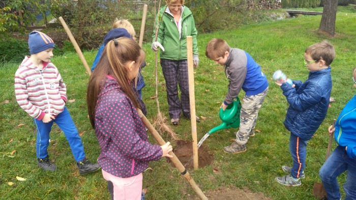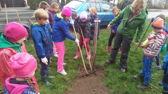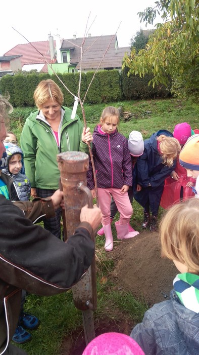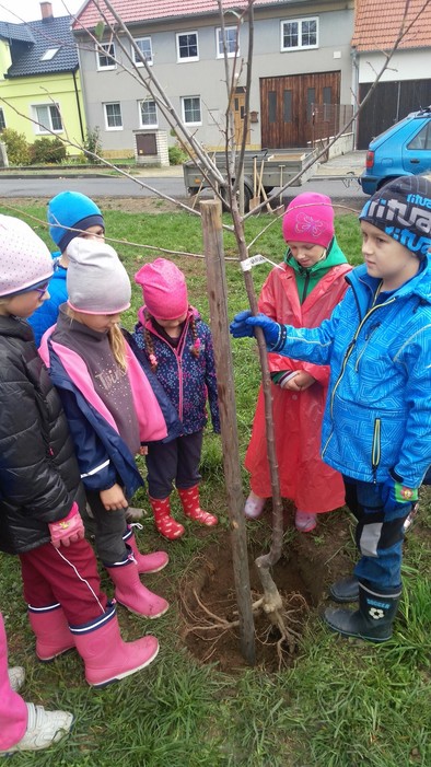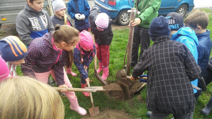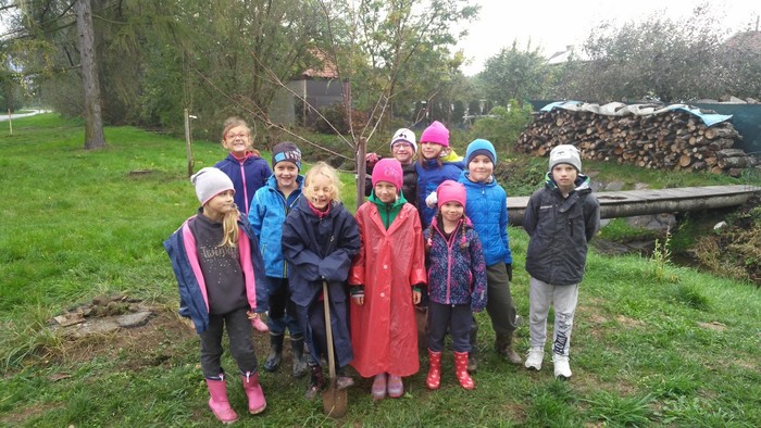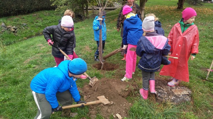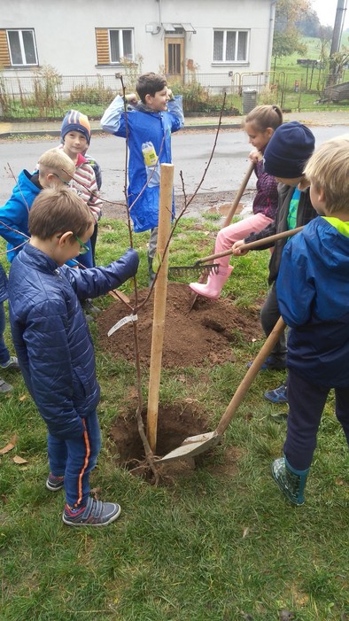 Ve čtvrtek 18. 10. 2018 naši žáci spolu s představiteli obce zasadili na dolním konci obce 5 mladých stromků - 2 třešně, švestku, hrušeň a kaštan. Práce je velice bavila. Slíbili, že se o stromy budou starat. Zároveň se už teď těší na plody ovocných stromů.