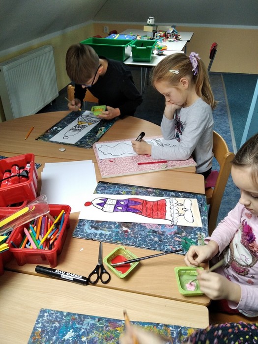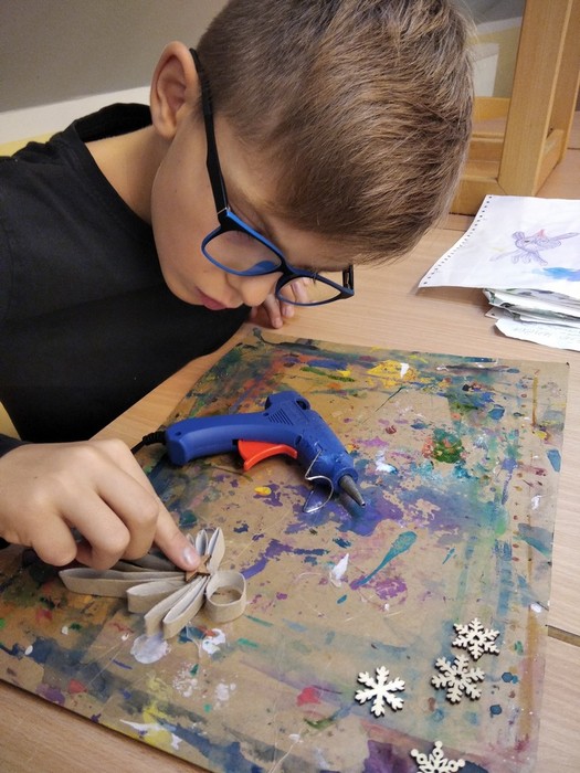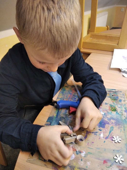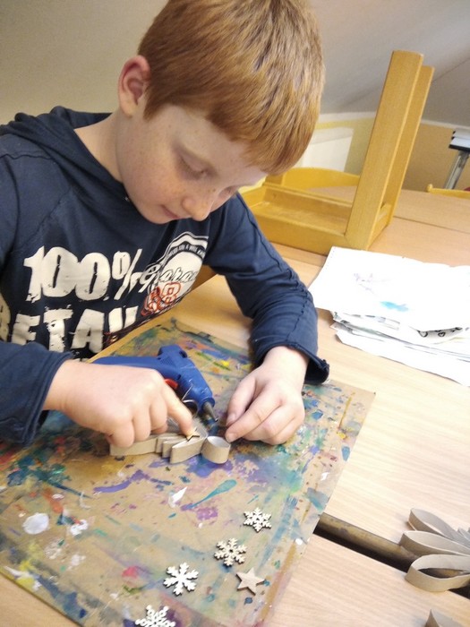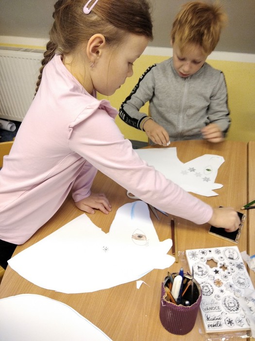Ve školní družině se děti opravdu nenudí. Začátek zimy je spojený hned s několika svátky, proto se pekly svatomartinské rohlíčky a vyráběl kůň pro Martina, mimo nácvik mikulášské besídky se samozřejmě malovali čerti a Mikuláši, před Vánocemi se vyráběly ozdoby a navštívili jsme Betlémy u Hašů, ale také jsme stihli radovánky na sněhu. Ve školní družině si děti rády pohrají, ale stihnou toho opravdu hodně.