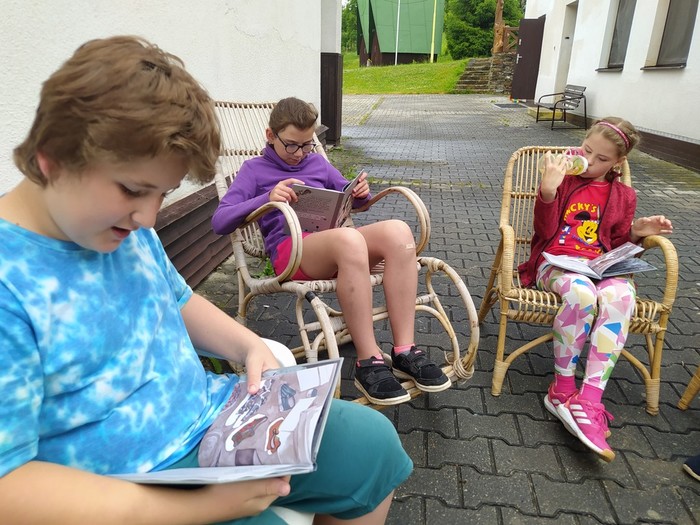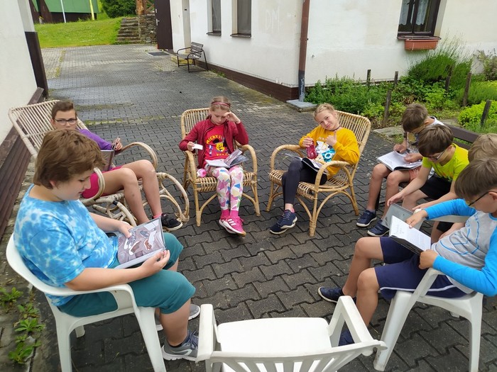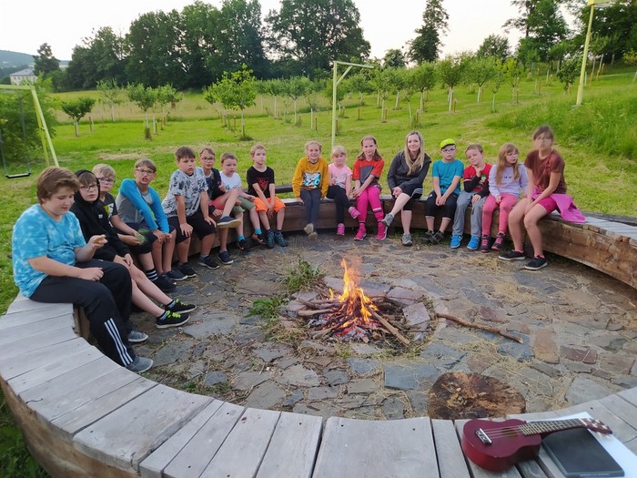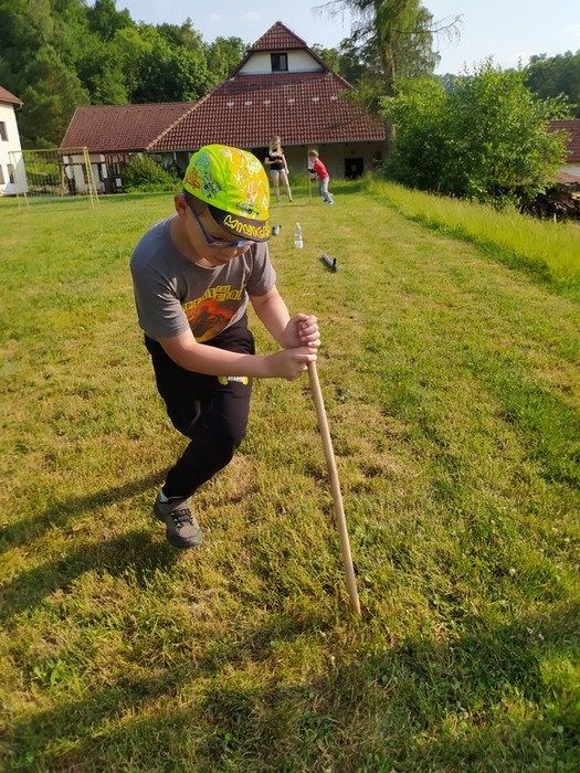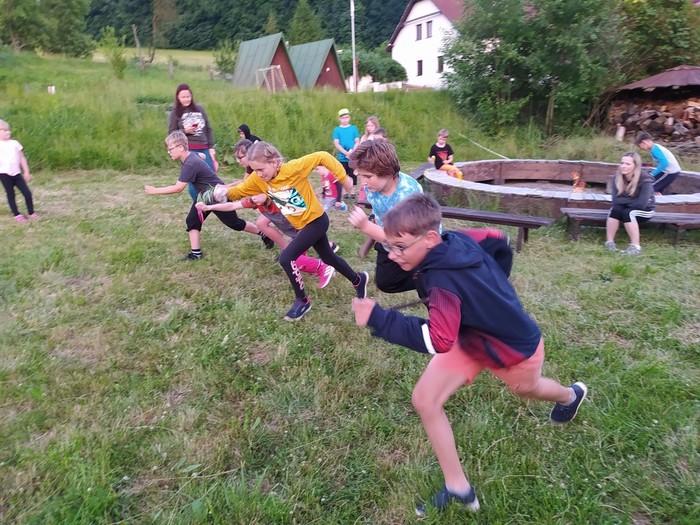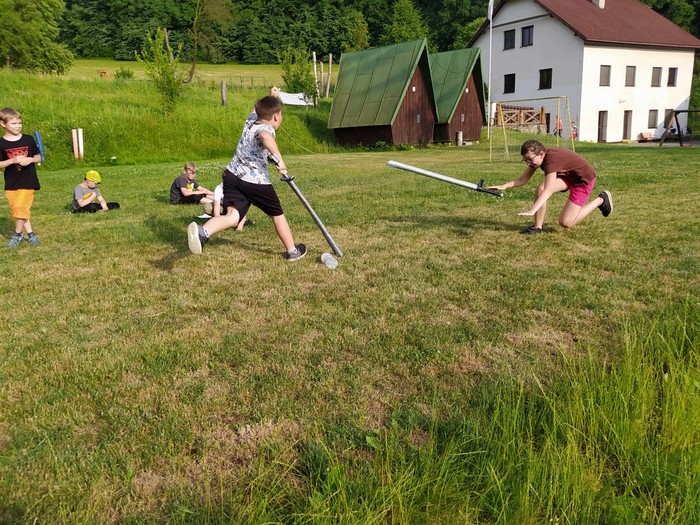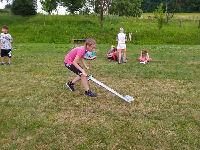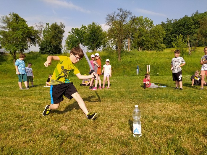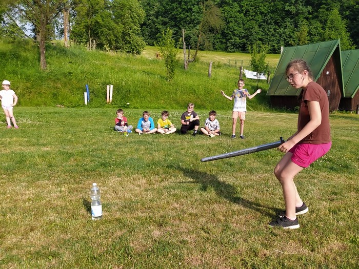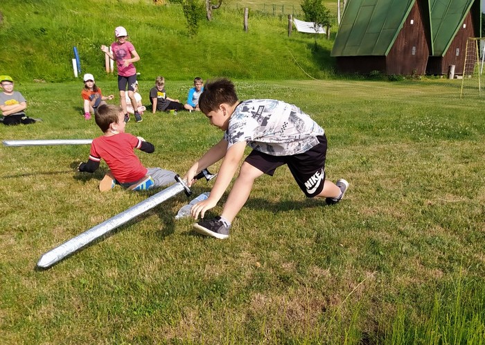 Den 2.: ranní učení a čtení - psaní pohledů a dopisů - rytířská cesta cti v lese - rytířské souboje - odpolední koupání - další rytířská cnost zdvořilost - zpívání u táboráku