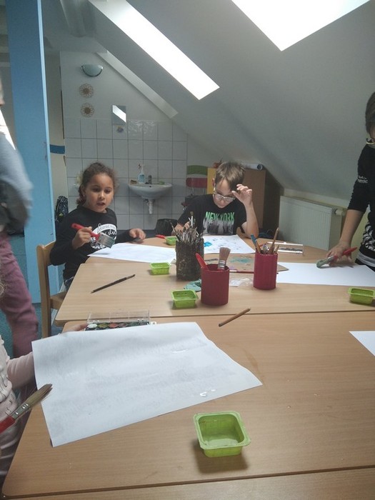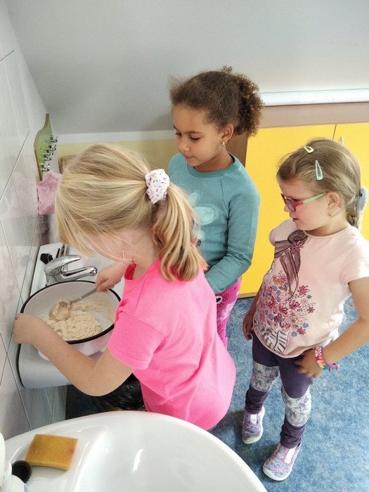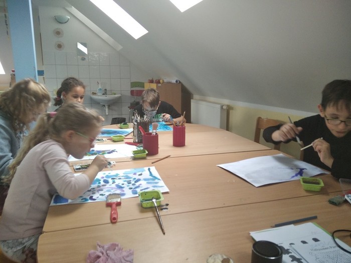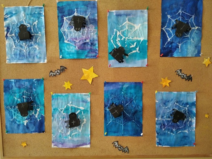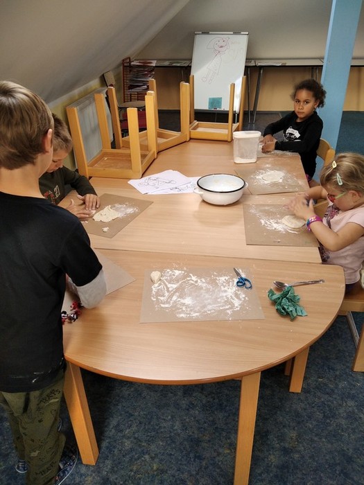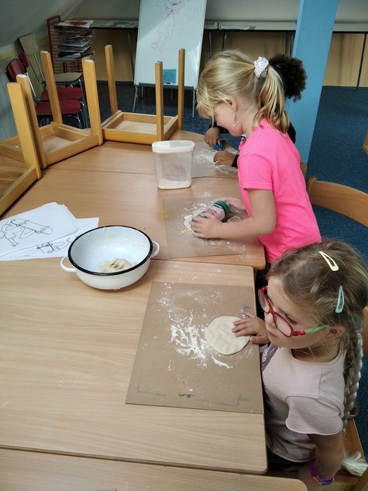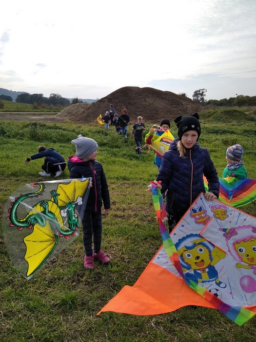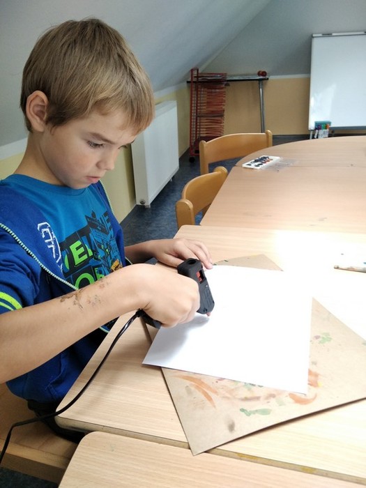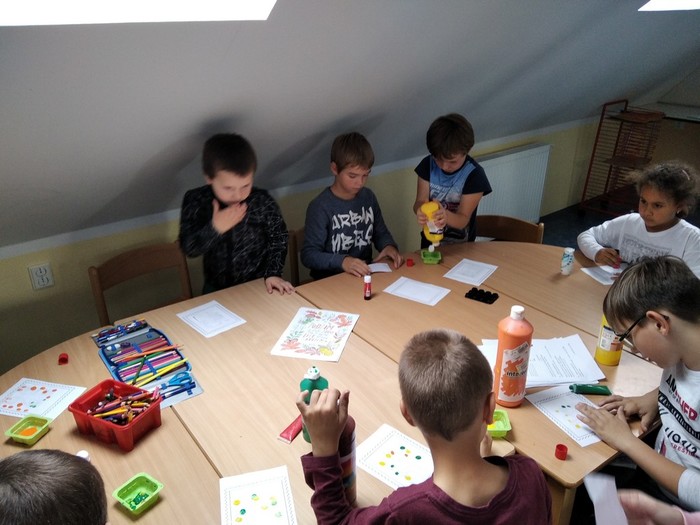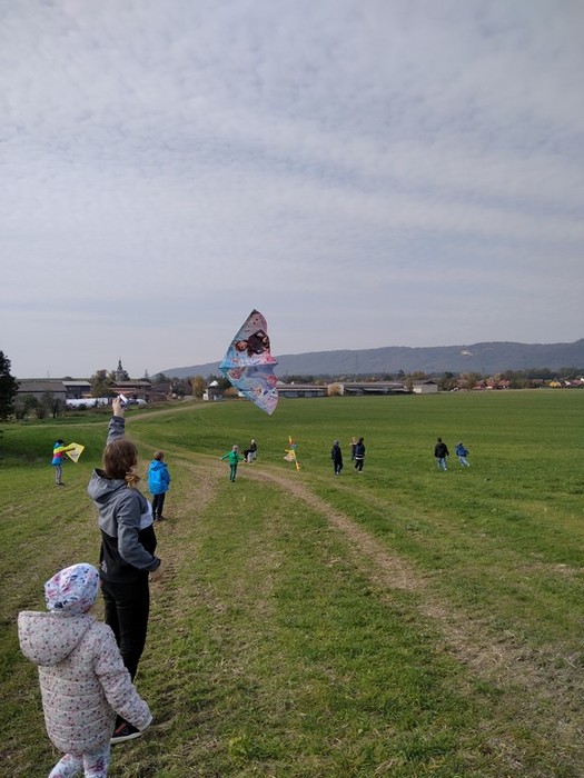 Školní družina v říjnu byla ve znamení pravého podzimu: např. výroba dýní, pečení brambor, drakiáda, sázení jahod. K tomu navíc práce s těstem, vyrábění pavoučka na síti, zapíjení barev a samozřejmě sporty venku i uvnitř a volné hraní.