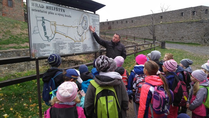 V pátek 26. 10. jsme se vypravili společně s mateřskou školou na hrad Helfštýn. Bylo sice pod mrakem, ale nezapršelo a výlet byl bezvadný. Prošli jsme se lesem, poslechli si zajímavý výklad, rozhlédli se po kraji z nejvyšší věže a splnili také několik úkolů do školy.