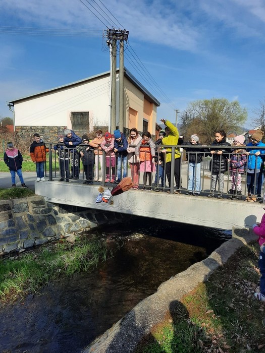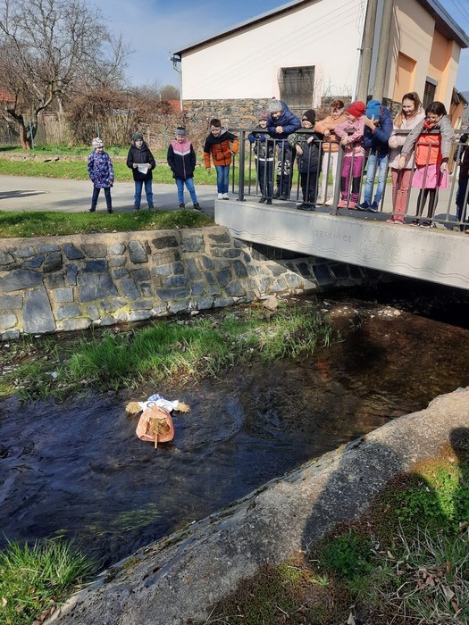 Druhým nejdůležitějším momentem bylo vynášení Morany v pátek 15. 3. Děti tančily a prozpěvovaly u Jezernického potoka a snad jaro dobře přivítali a zimu vyhnali.