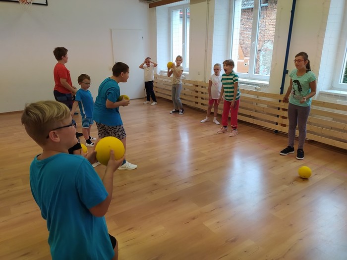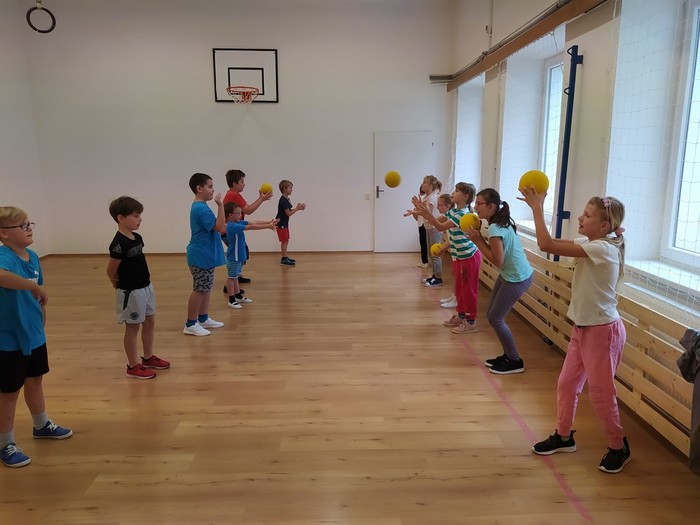 nácvik kopu a hodu v tělocviku (jednou venku, jednou v tělocvičně)