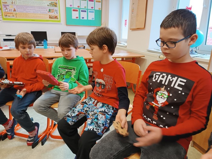 Poslední adventní týden byl doslova nabitý zajímavými událostmi. Kromě učení a nějakých těch krátkých prověrek znalostí a dovedností se děti hlavně těšily na návštěvu kostela s povídáním s panem farářem, na pečení medových perníčků a samozřejmě na poslední vánoční den. Ten byl plný ochutnávek cukroví a těšení se na dárky. Děkujeme, že se děti krásně vzájemně obdarovaly. Vážíme si toho, že spolu dobře vycházejí. Ježíšek zase nadělil spoustu nových her také do školní družiny.