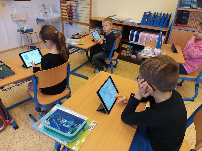 Tento týden se pilně nacvičovala besídka na Mikuláše. Ale nejen písničkami a básničkami se bavíme, v angličtině si například děti zahrály na restauraci. V rámci rozvoje informatického myšlení se seznámily s novými roboty Blue-bot a jednoduše je programovaly.