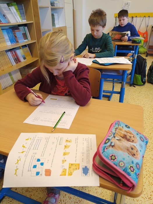 První jarní týden hned po prázdninách byl opravdu nabitý. V pondělí žáci 2., 3. a 5. ročníku řešili matematickou soutěž "Matematického klokana", nejlepšími ve svých kategoriích byly Janička Pročková (Klokánek) a Jolanka Šimečková (Cvrček), jak jsme dopadli v rámci okresu se ještě dozvíme podle celkových výsledků. Hned v úterý byl pak Světový den vody, kdy jsme měli exkurzi do ČOV a přírodovědné pokusy - fotky najdete v samostatné fotogalerii. Také jsme si připomněli toleranci a respekt k odlišnostem díky Ponožkovému dnu Downova syndromu. Poctivě všichni přišli s odlišnou ponožkou na každé noze. Páťáci si začali vyrábět lapbook, opakovací knížečku na témata českého jazyka. Také řádně nacvičujeme na vynášení Morany příští pátek.