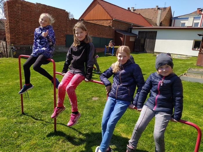 V posledním dubnovém týdnu se počasí vydařilo, a proto jsme hodně času trávili venku. Téměř každou přestávku na školním dvorku a tělocviky, školní družinu i některé další hodiny na školní zahradě. Starší děti vyráběly z přírodnin pozdrav maminkám. Konec týdne byl trochu čarodějnický - čtení, úkoly k poslechu a filmu o Malé čarodějnici.