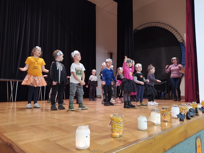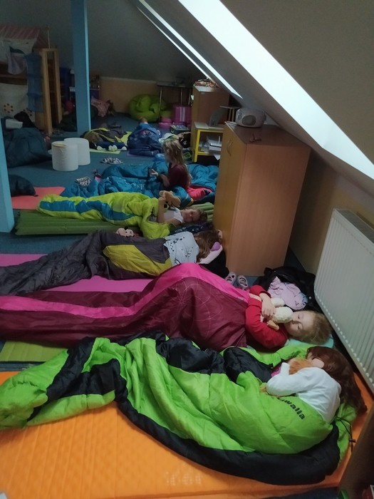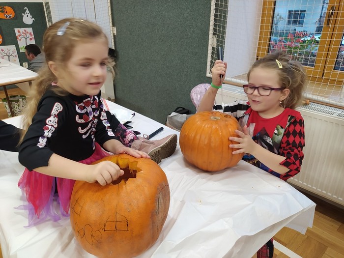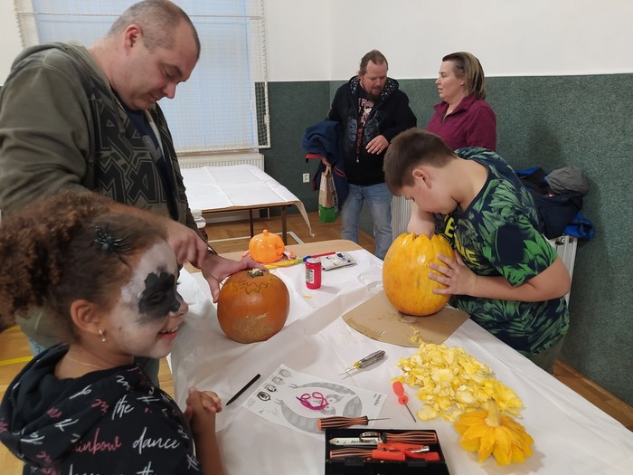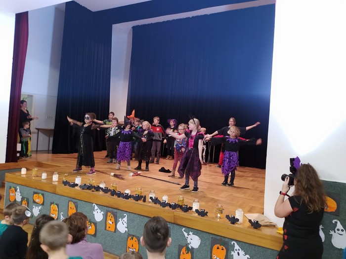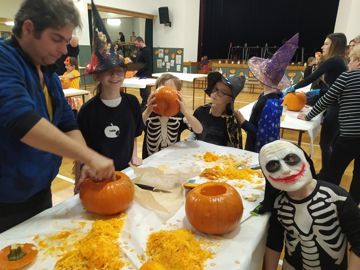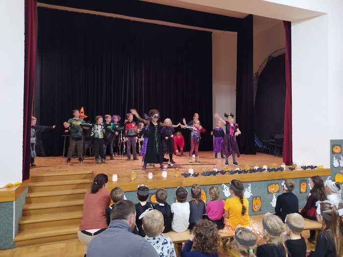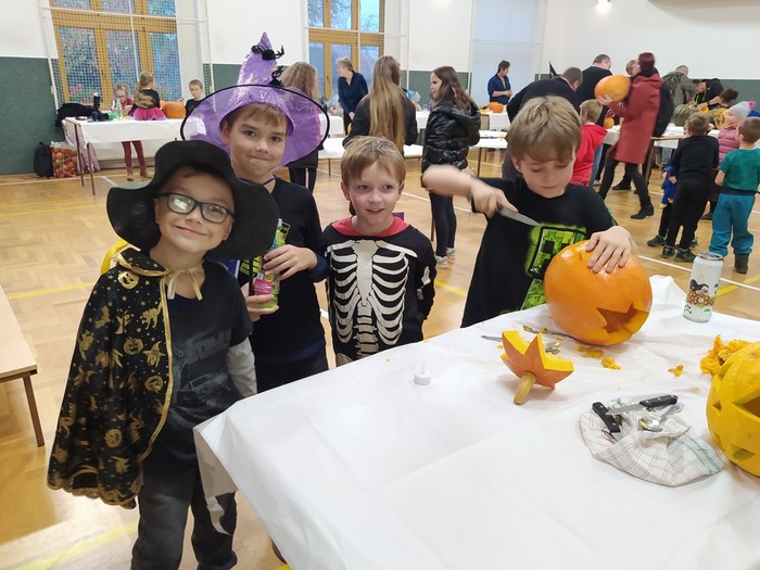 V pondělí proběhlo také dýňování a později spaní ve škole. Klub rodičů dýňování velice pěkně připravil a děti si vyřezaly dýně, ochutnaly podzimní pečené dobroty, opekly špekáčky a zažily stezku odvahy. Přenocovaly pak ve škole. Halloweenu a Dušičkám se pak věnovaly také některé vzdělávací aktivity, např. v českém jazyce, v matematice a ve čtení.