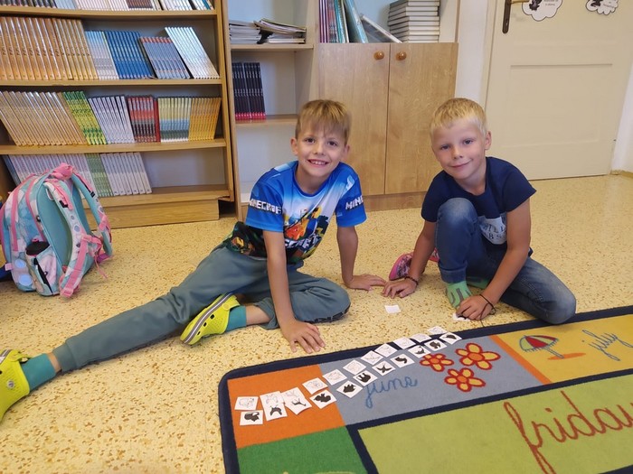 V prvním týdnu jsme se hodně bavili o školních pravidlech. Už jsme se ale také začali učit podle rozvrhu hodin. Zdá se ale, že přestávky na školním dvorku jsou pořád nej!