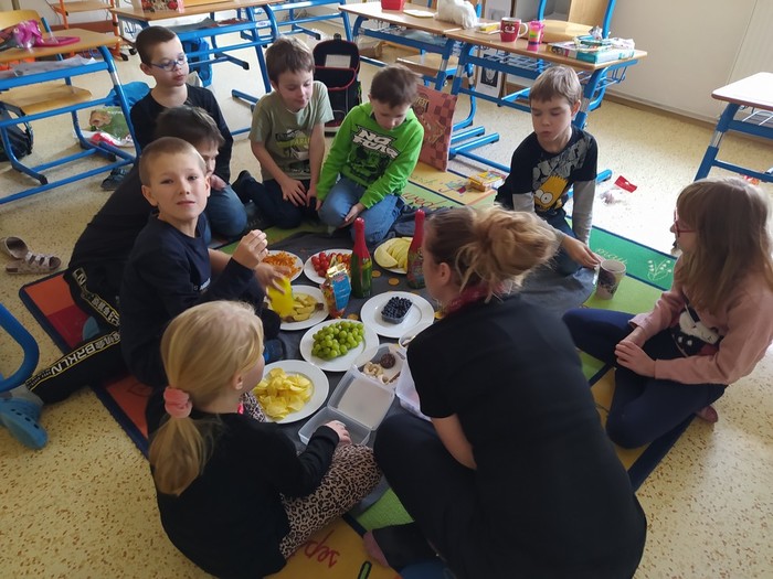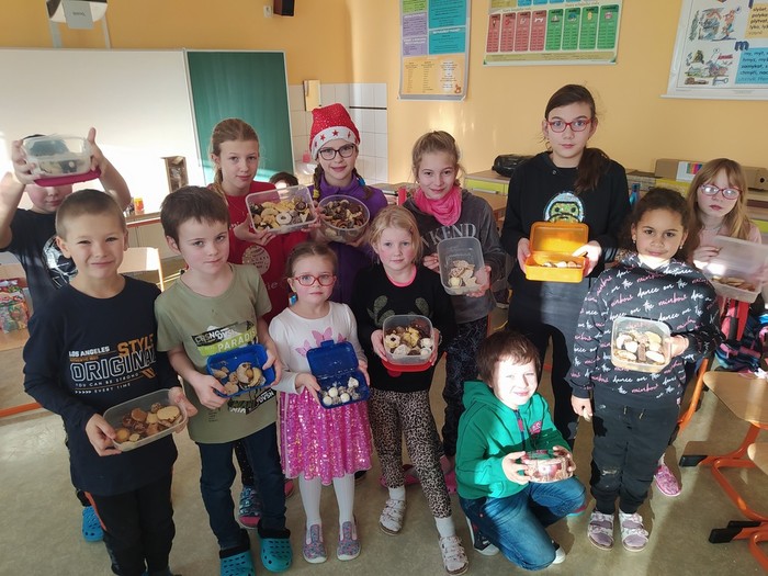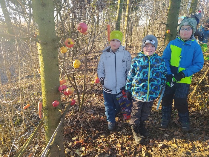 Středa 22. 12. byl poslední školní den roku 2021. Hned ráno jsme v remízku nazdobili spoustu pěkných stromečků pro zvířata. Poté jsme spěchali se ohřát do školy, kdy jsme si uvařili dobré čaje, ochutnali vzájemně cukroví a těšili se na dárečky. Ty přišly dokonce třikrát. Nejprve žáci obdarovali své spolužáky, kterým připravili osobní dárek. Poté přišla na řadu vánoční dárková losovačka, kdy nebylo do posledního tahu jasné, který dárek komu připadne. No a nakonec jsme rozbalovali velké dárky pod školním stromečkem: nové hry a stavebnice do školní družiny, ale také nářadí na zahradu a učební pomůcky.