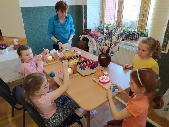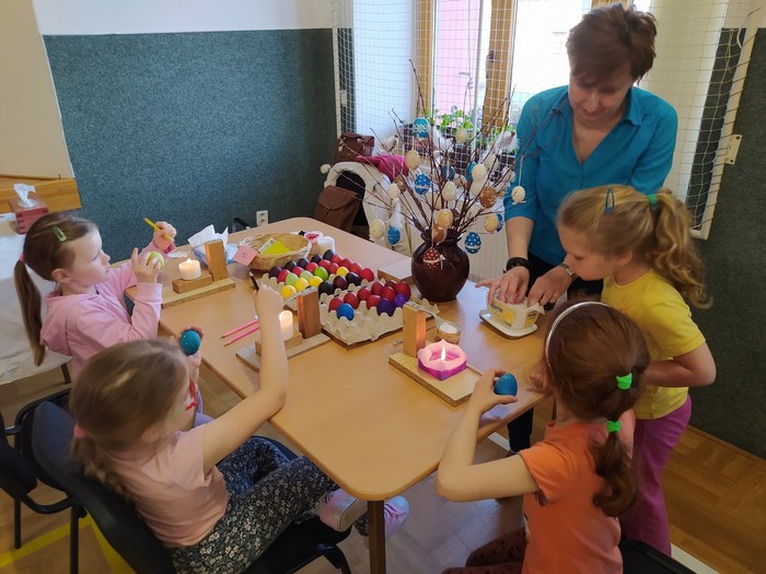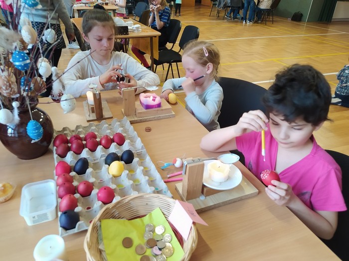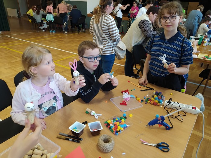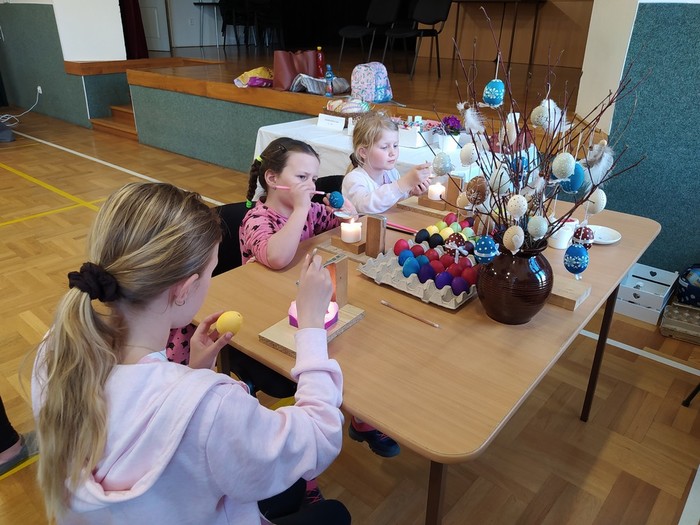 Ve středu 13. dubna odpoledne jsme se sešli v sále kulturního domu, abychom se výtvarně pobavili a vyrobili si nějaké pěkné dekorace na Velikonoce. Nakonec přišlo docela dost dětí ze školy, školy, ale i jiných místních, jsme rádi, že přišly také maminky a babičky.