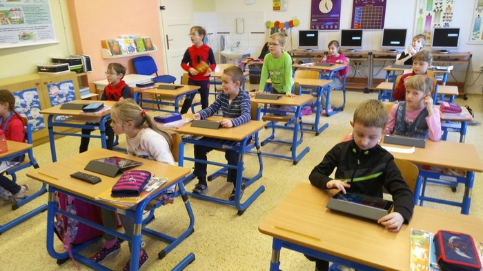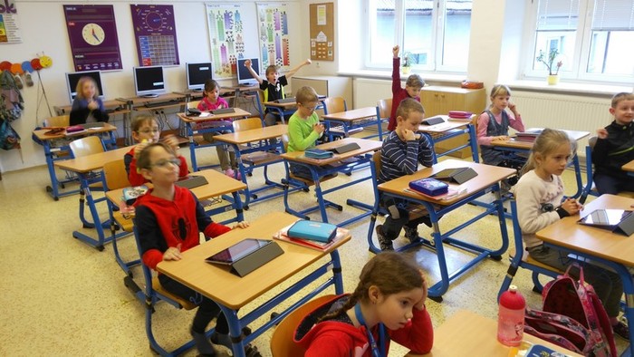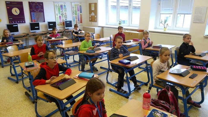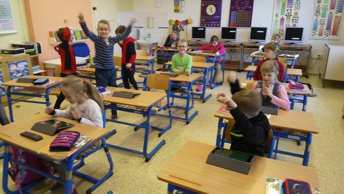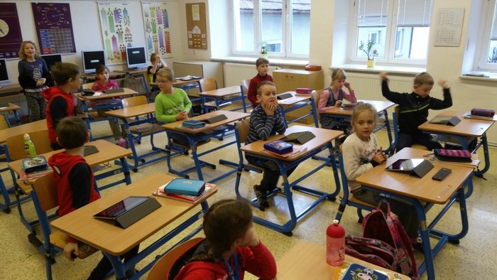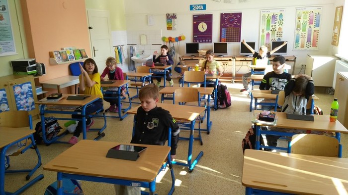Škola od 1. 2. 2019 realizuje projekt dotovaný z EU číslo CZ.02.3.68/0.0/0.0/18_063/0010916. Kromě jiných je jednou z aktivit práce s digitální výukovou technikou. Zakoupili jsme do školy pro žáky Apple iPady. Nyní se s nimi žáci seznamují, získávají zkušenosti při ovládání, ale zejména pracují s výukovými aplikacemi. Vhodné aplikace nejenže učení zpříjemňují a jsou motivační, ale je s nimi i velká zábava. Takto jsme se radovali při testovací hře Kahoot.