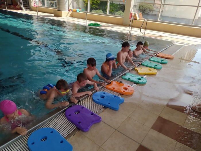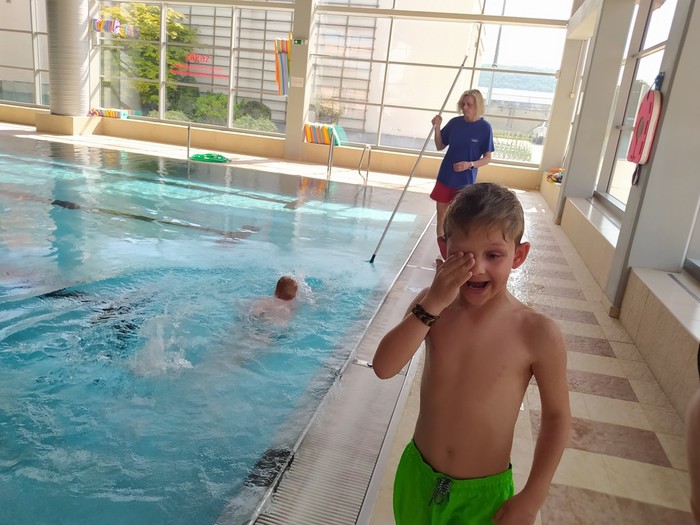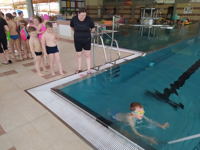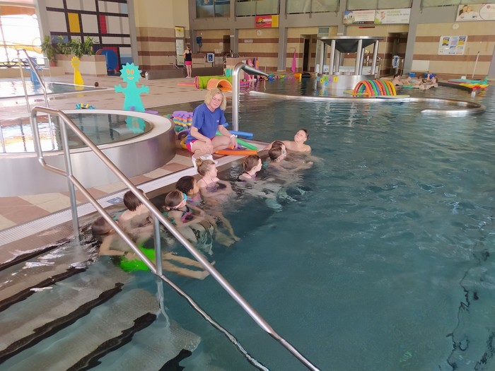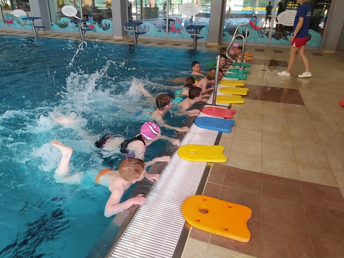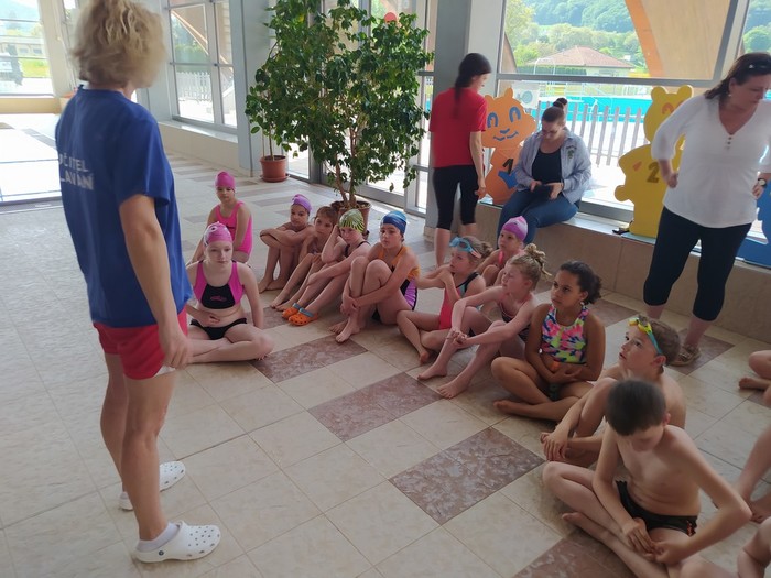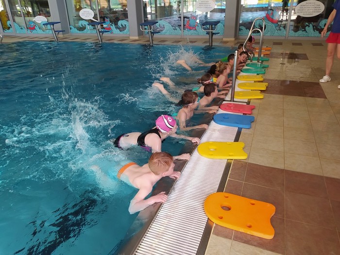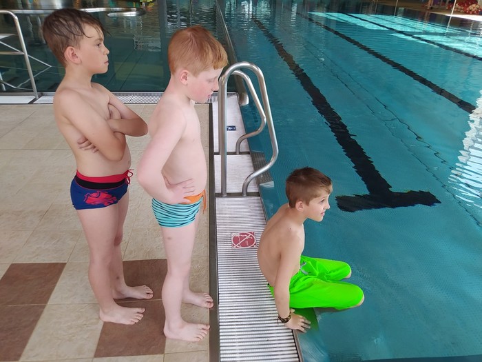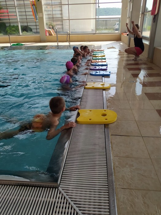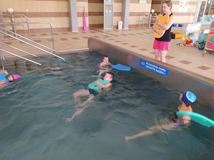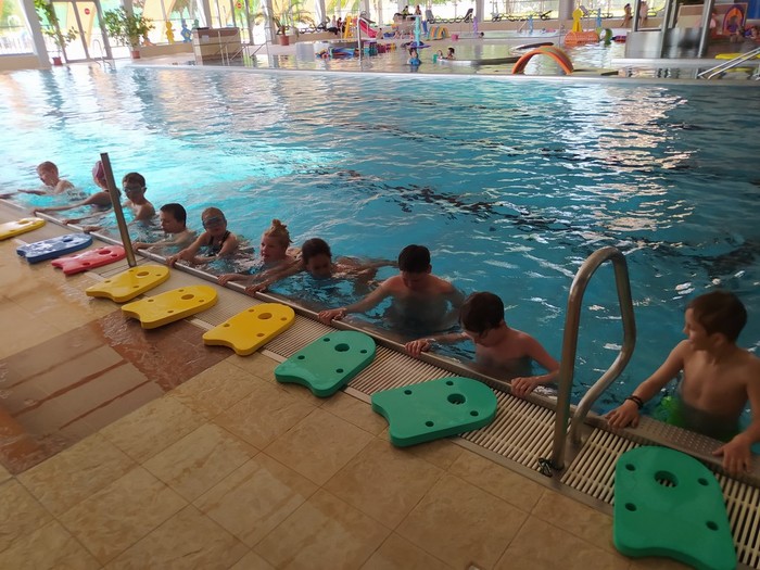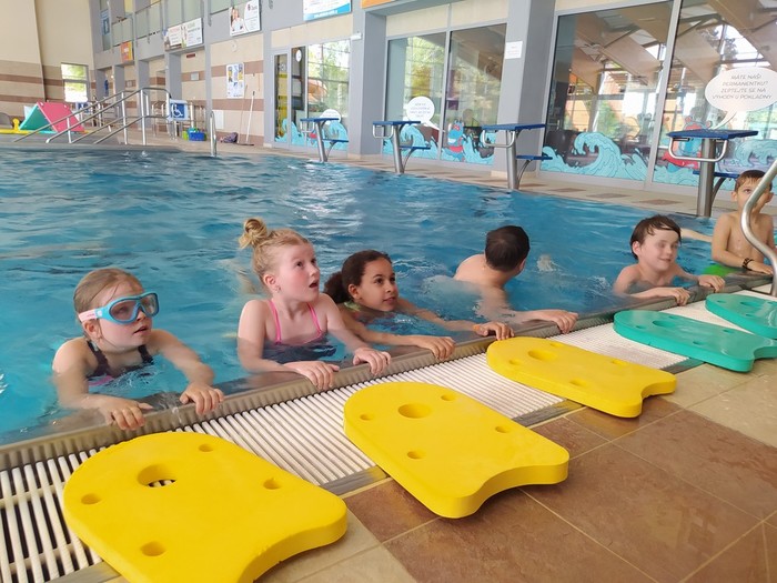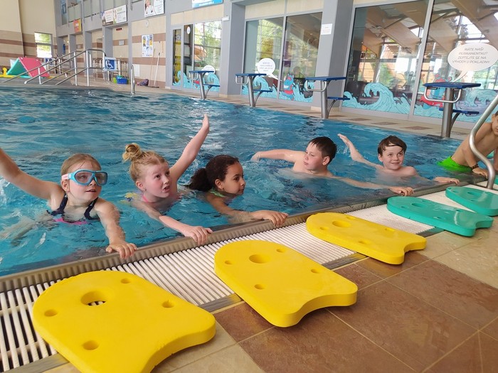 Od pondělí 22. 5. čeká na žáky 8 lekcí plavání v bazénu v Hranicích. Dnes zahájili rozdělením do plaveckých družstev a hned začali s výukou plavání. Plavecká škola je dobře vybavená trenéry a pomůckami. V plavecké hale je pěkně teplo a voda je příjemná. Na závěr si žáci za odměnu užili i vířivku.