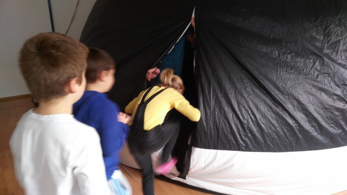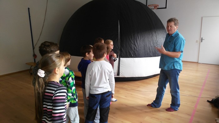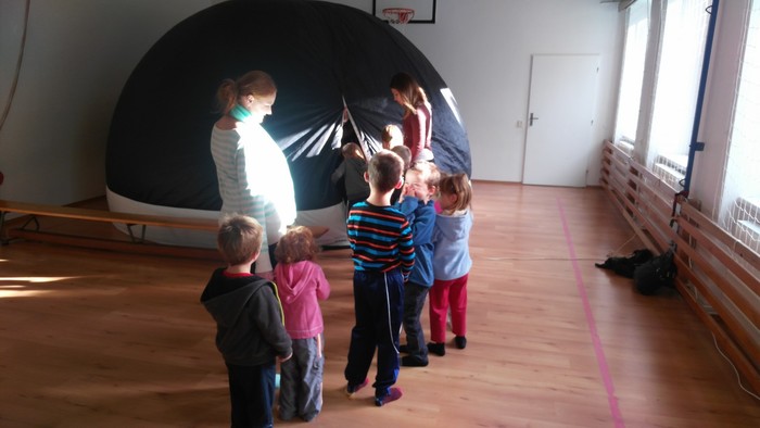 V pondělí 5. 11. se žáci školy a děti z MŠ mohli pohodlně položit v zážitkovém stanu a nakouknout do vesmíru. Přímo v tělocvičně nám vyrostlo planetárium. Pořad plný zajímavých informací o planetách a hvězdách se všem moc líbil.