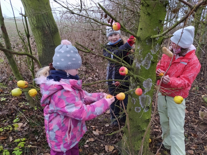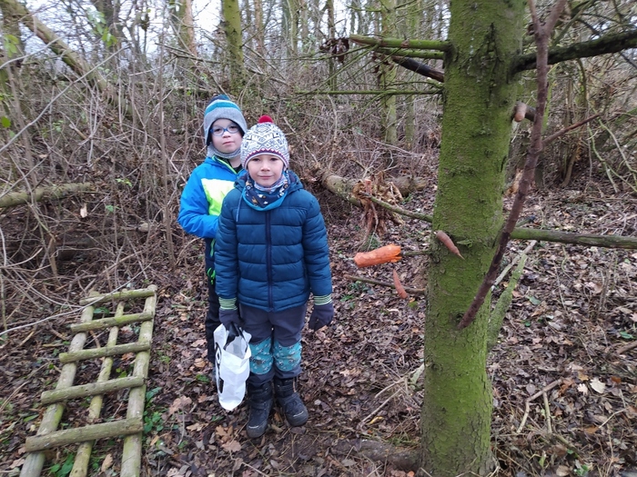 Poslední den školy před Vánocemi tradičně chodíme zdobit stromečky pro zvířata. Děti tentokrát přinesly spoustu jablek, mrkve, kaštanů, zrní, seno a další potravu pro zvířátka.