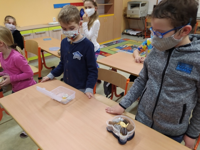 Na závěr dopoledne jsme si vybalili vánoční dárky, které si děti připravily navzájem, a společné dárky, které přinesl Ježíšek do školní družiny a do školy - hlavně nové hry, ale také třeba 10 notebooků a mikroskopovací kamery.